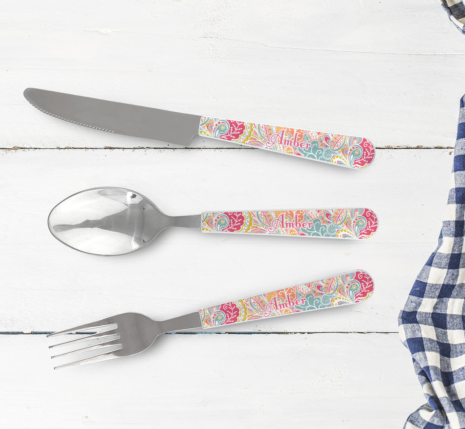 One of those items we all use on a daily basis and never give it much thought - cutlery. Having your own customized set of cutlery adds that special touch. A great addition to our custom plates and drinking pint glasses, this flatware set can be made in the same patterns to match.