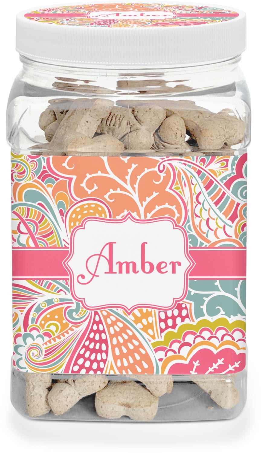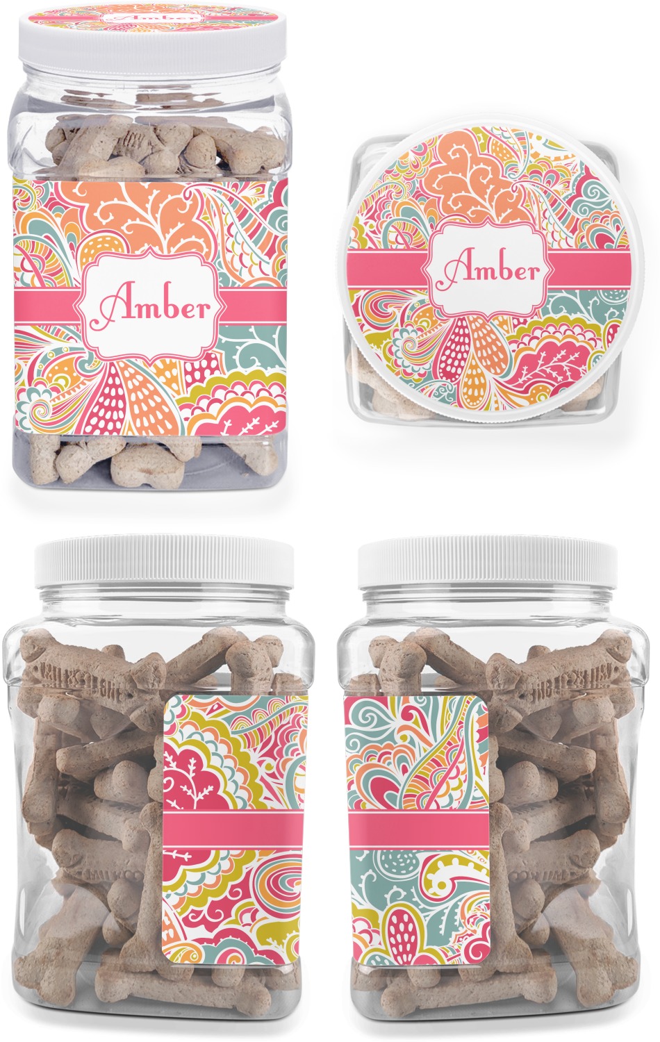 In the market for some other, cute pet supplies? Have a look at our Pet Accessories department, where you can customize a matching dog food bowl, dog food mat, or even a glass dog treat jar! Overjoyed with the idea of a customizable container? Explore the kitchen department within our Home and Garden category, where you can personalize snack containers for humans, as a gift, or just as a part of your kitchen decor!