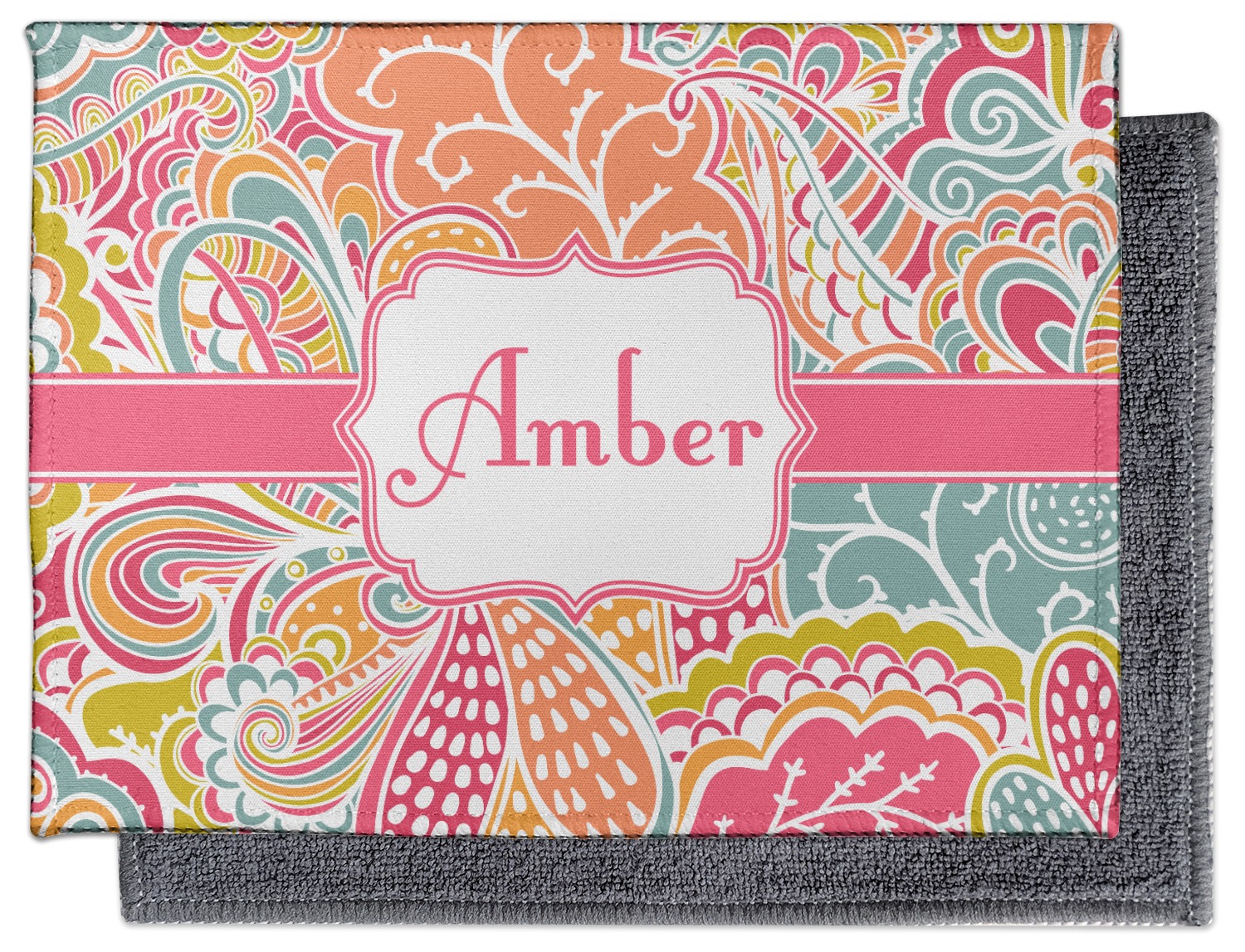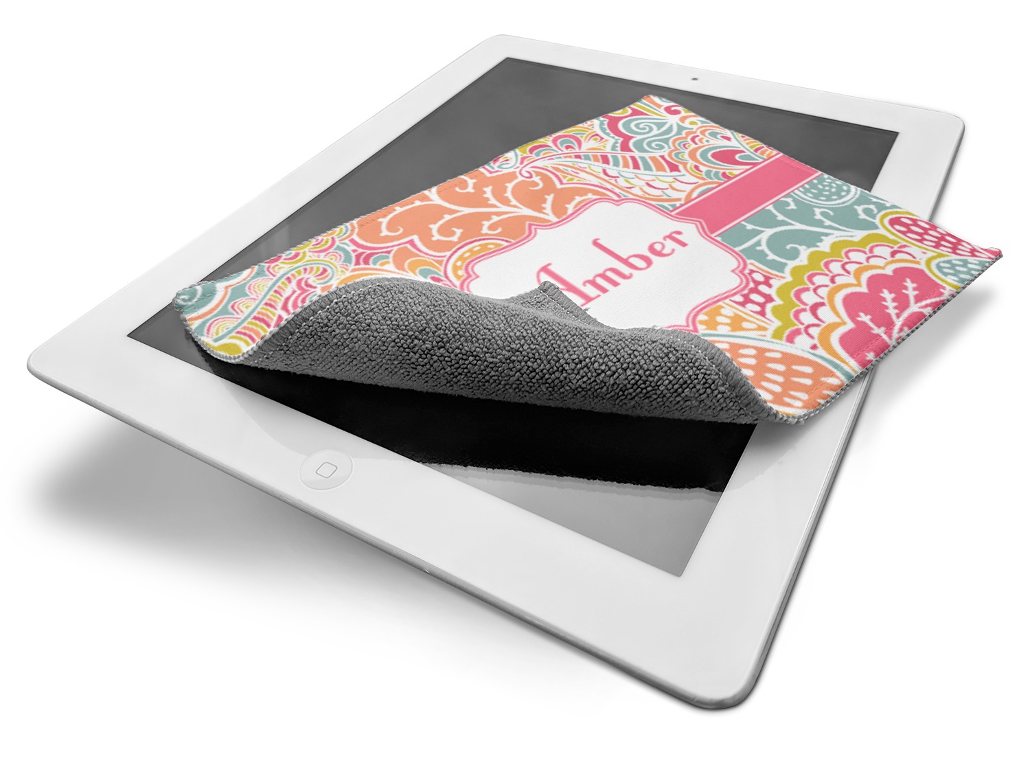 The back of this cleaning cloth is made from a gentle, grey microfiber material, that is masterful at removing smudges, grease, and fingerprints from lenses or electronic screens. The front side of the screen cleaner displays your personalized design in vibrant color. A beautiful stitch lines the edges and secures the microfiber to the polyester top. We provide you with the option of customizing this screen horizontally or vertically, depending on your preferences.