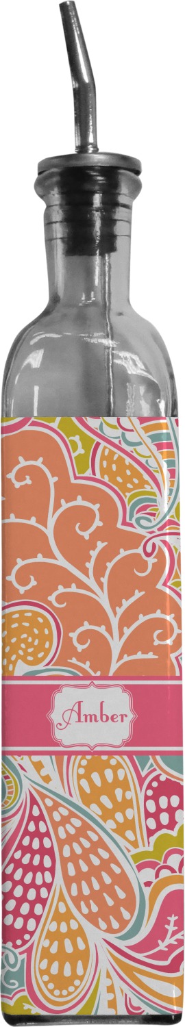 Made from recycled glass in Spain, these oil bottles have a classic, delicate look, and are accompanied by a metal spout for controlled pouring. Each bottle holds approximately 13 ounces and measures at 12 by 2 inches. We customize your glass oil bottle by applying your personalized design on the front and sides, using an adhesive. Our customizable stickers are made from high quality, gloss vinyl and are printed with waterproof, eco-solvent inks. These pieces are machine cut for accuracy and symmetry. The result is a robust, waterproof, adhesive decal that will not fade or deteriorate with time.