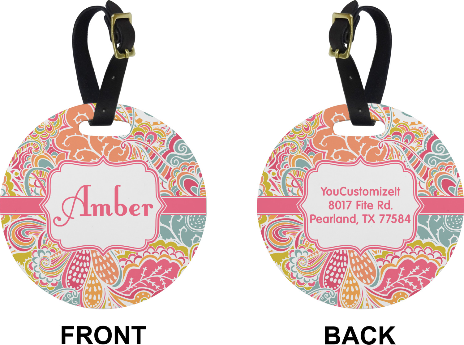 These cute luggage tags are made of a fiber-reinforced, UV-resistant plastic, making them waterproof and durable enough for both everyday use and the rugged adventures of any traveler! A leather strap with holes and a buckle is included with your purchase and can be used to attach your custom luggage tag to any suitcase, backpack, or duffel bag. You can design these travel tags as you wish; your customization will be displayed across the front, while the back will show as little or as much personal information as you want.
