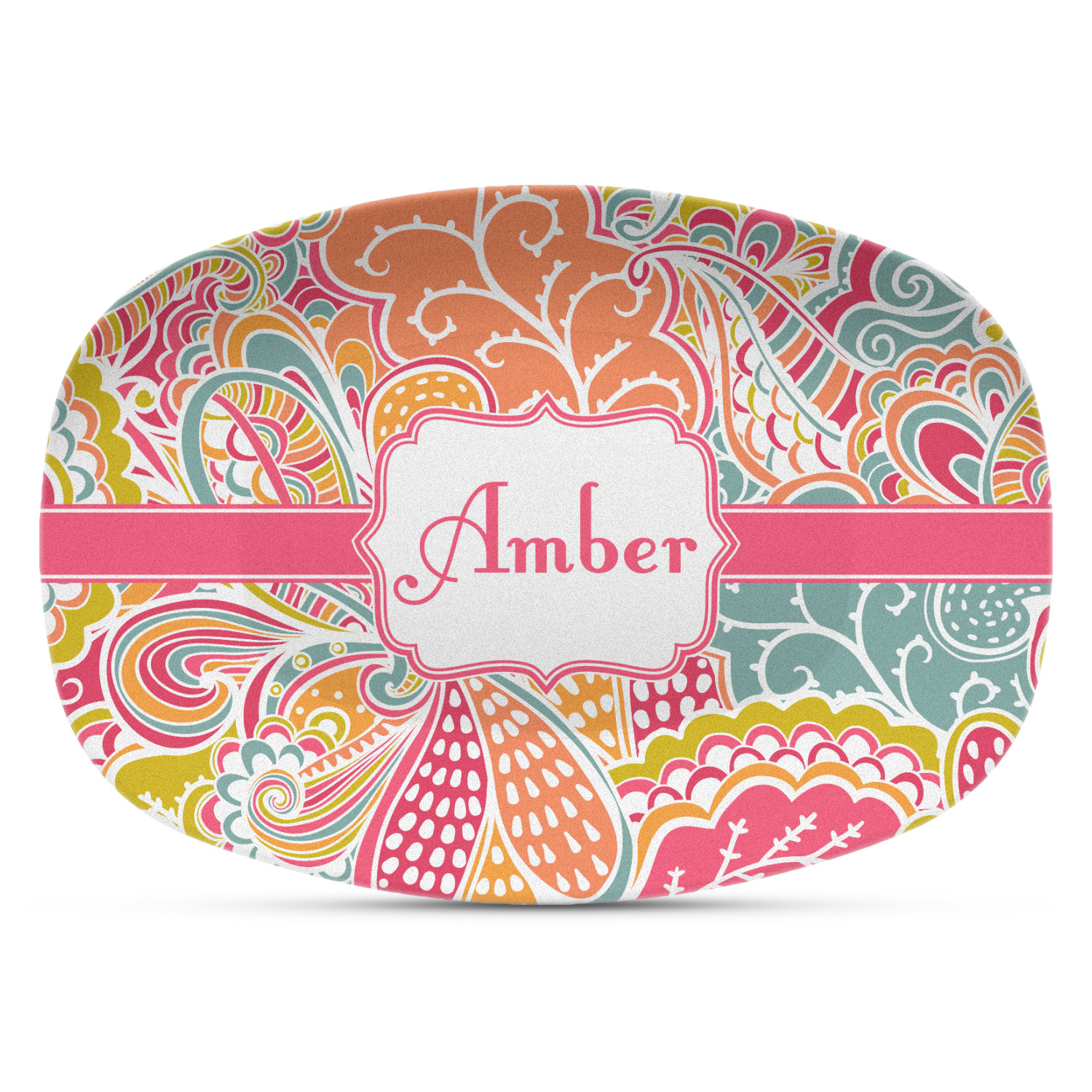These serving platters are made from a composite, thermo-set, polymer plastic that gives it the versatility, durability, and weight of a melamine platter, without any of the downsides of melamine. These personalized platters, can withstand temperatures up to 250 degrees Fahrenheit, for up to 60 minutes. No harmful chemicals, such as BPA, formaldehyde, and DEHPs were used in the manufacturing of this product. This large serving platter measures at 14" x 10.25", and is spacious enough to hold any of your appetizers or bite-sized desserts. The platter exhibits your personalization across the entirety of its front.