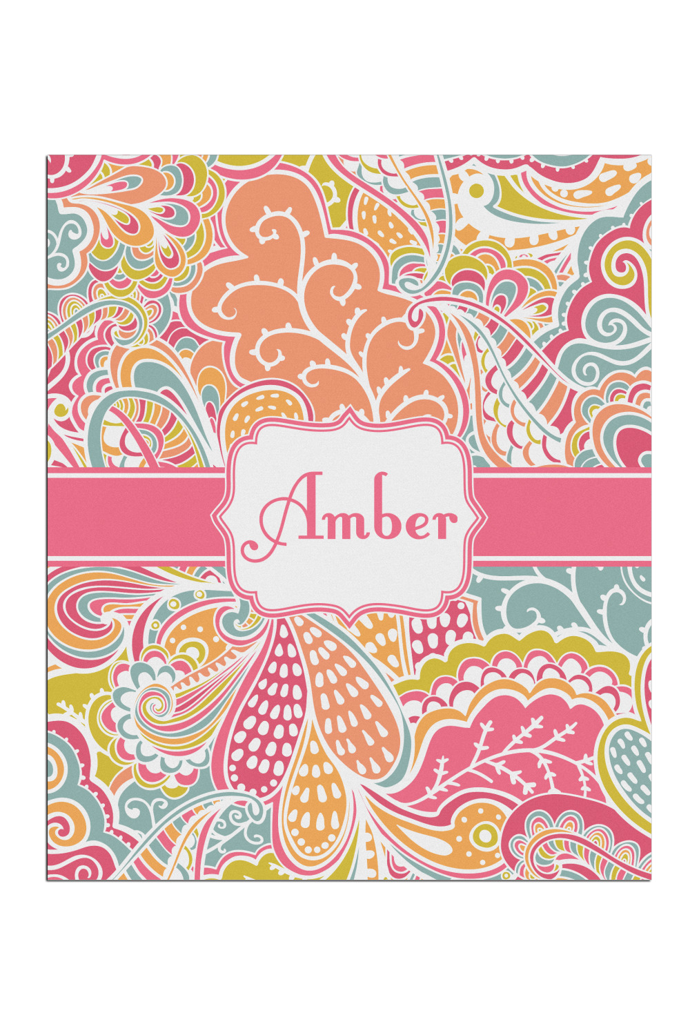 A pink ribbon with white stitching attached to a decorative white label trimmed in pink ties the entire design together. Add personalization of your choice in a coordinating color to make this pattern even more special.