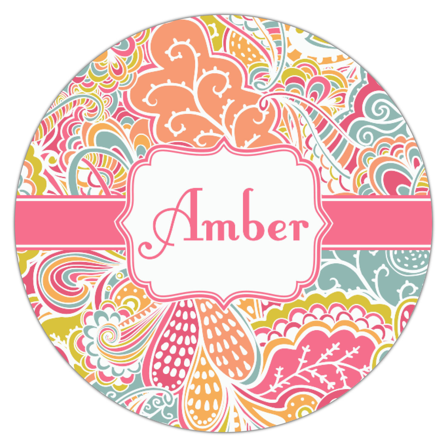A pink ribbon with white stitching attached to a decorative white label trimmed in pink ties the entire design together. Add personalization of your choice in a coordinating color to make this pattern even more special.