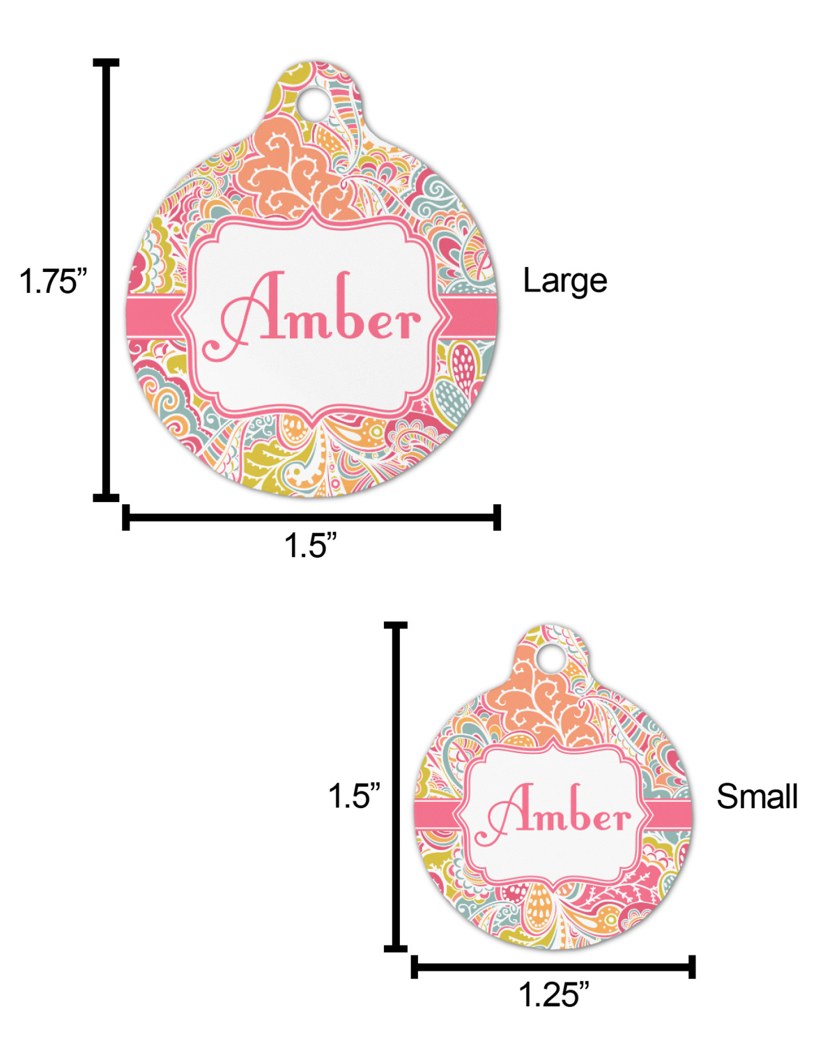 Go ahead; skip the monotony of plain pet ID tags with your very own, customized & personalized, round pet tag! This pet ID tag, fitting for both cats and dogs, will catch the eye of any onlooker (humans, canines, and felines, alike!) and accentuate your pet's individual personality.