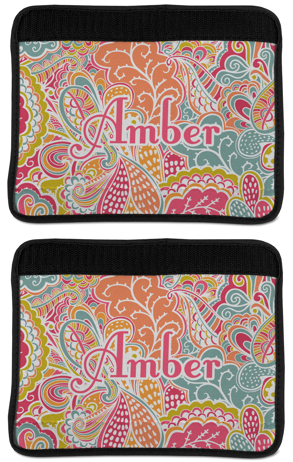 Made from neoprene, our seat belt strap covers wrap around the belt itself and have a Velcro tab for easy attachment and closure. The belt's edges are trimmed with a black polyester for a secure finish. Each cover is 9.5 by 7 inches when open and 9.5 by 2.5 inches when closed. We print your personalized design on the face of the seat belt pad.