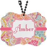 A pink ribbon with white stitching attached to a decorative white label trimmed in pink ties the entire design together. Add personalization of your choice in a coordinating color to make this pattern even more special.