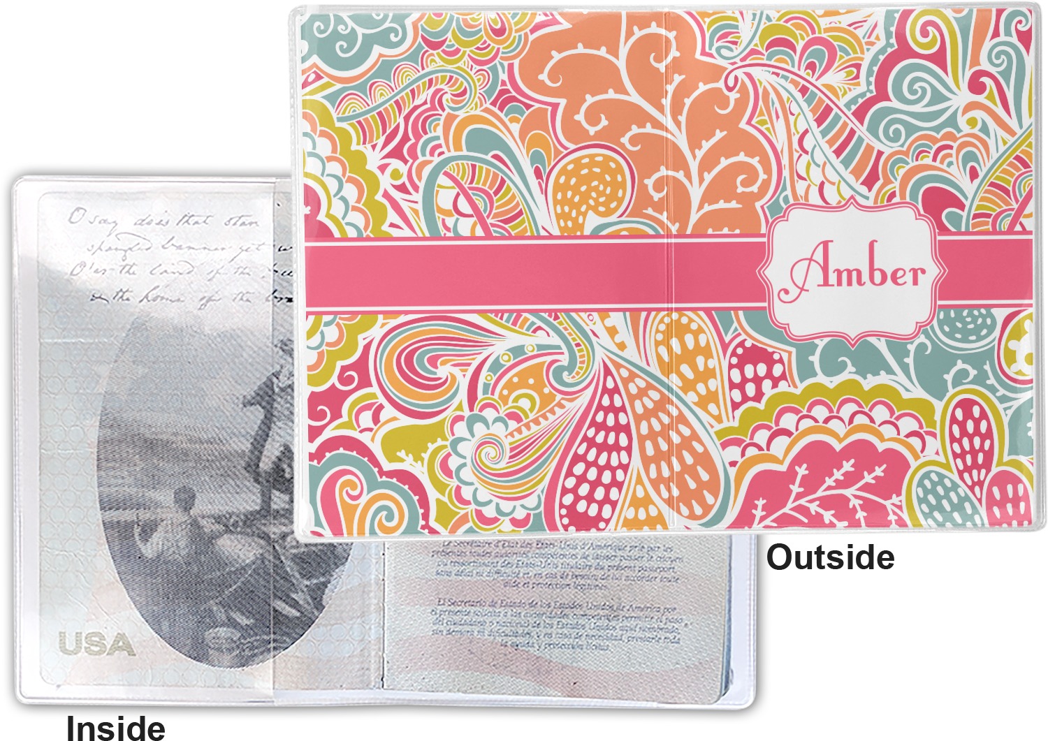 This cover is made of a sturdy clear vinyl with a personalized vinyl insert inside. There is a large and a small pocket on either side to hold the covers of your passport easily and firmly. The passport holder is approximately 7.5" x 5.25", the perfect size to snugly fit your passport. This slim cover is the perfect way to protect your passport without being one more bulky item you have to carry.