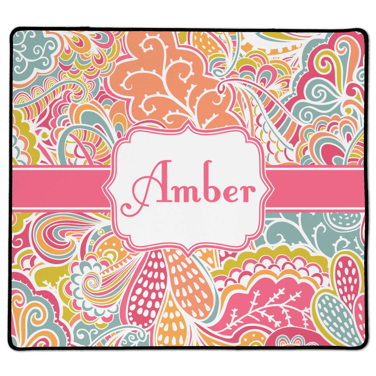 A pink ribbon with white stitching attached to a decorative white label trimmed in pink ties the entire design together. Add personalization of your choice in a coordinating color to make this pattern even more special.