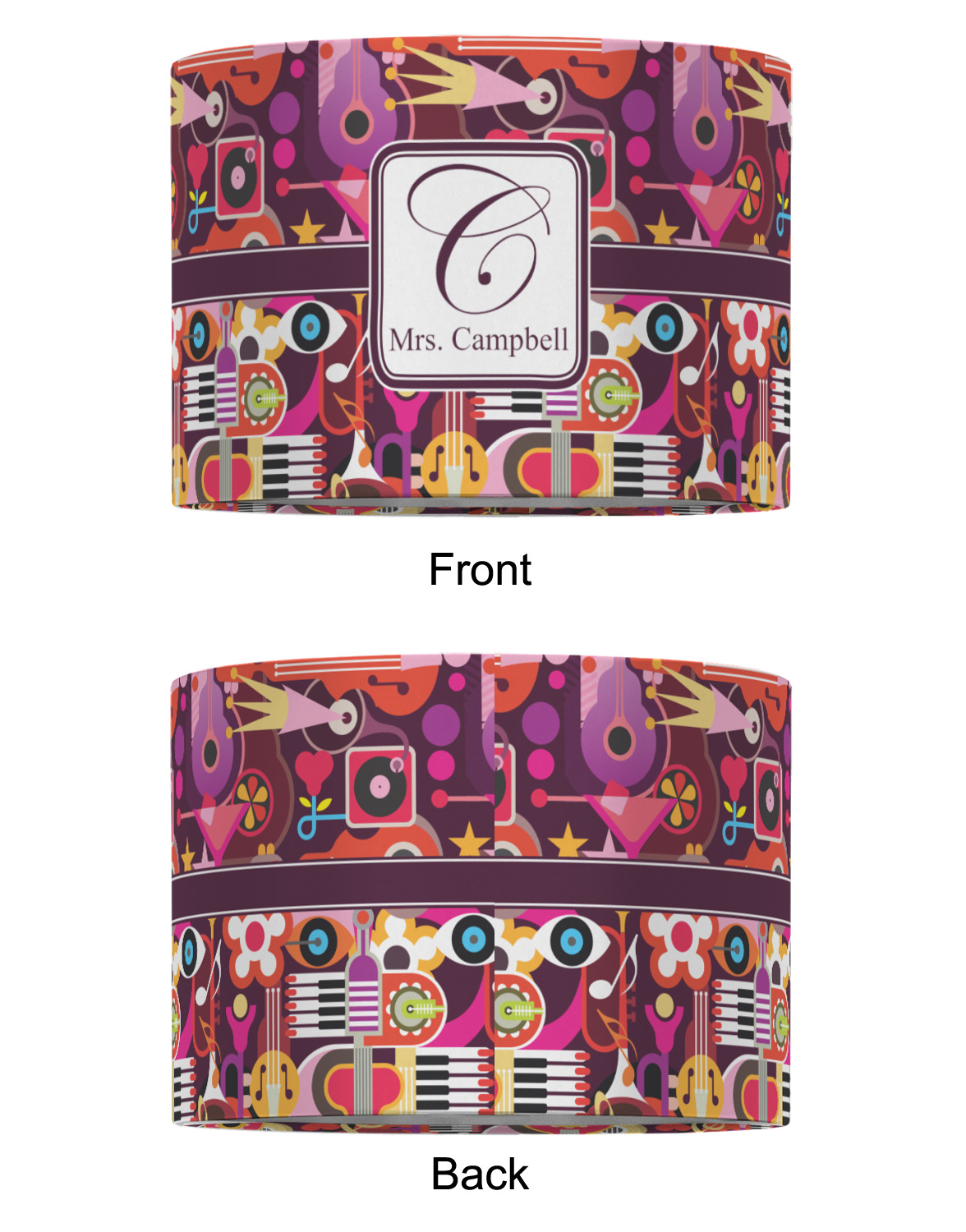 Our personalized drum lamp shades are available in 2 different materials: Poly-film or fabric. Poly-film lamp shades come with the option of white or black border trims to best match your customized design. Fabric lamp shades are finished with a rolled edge for a clean modern look.