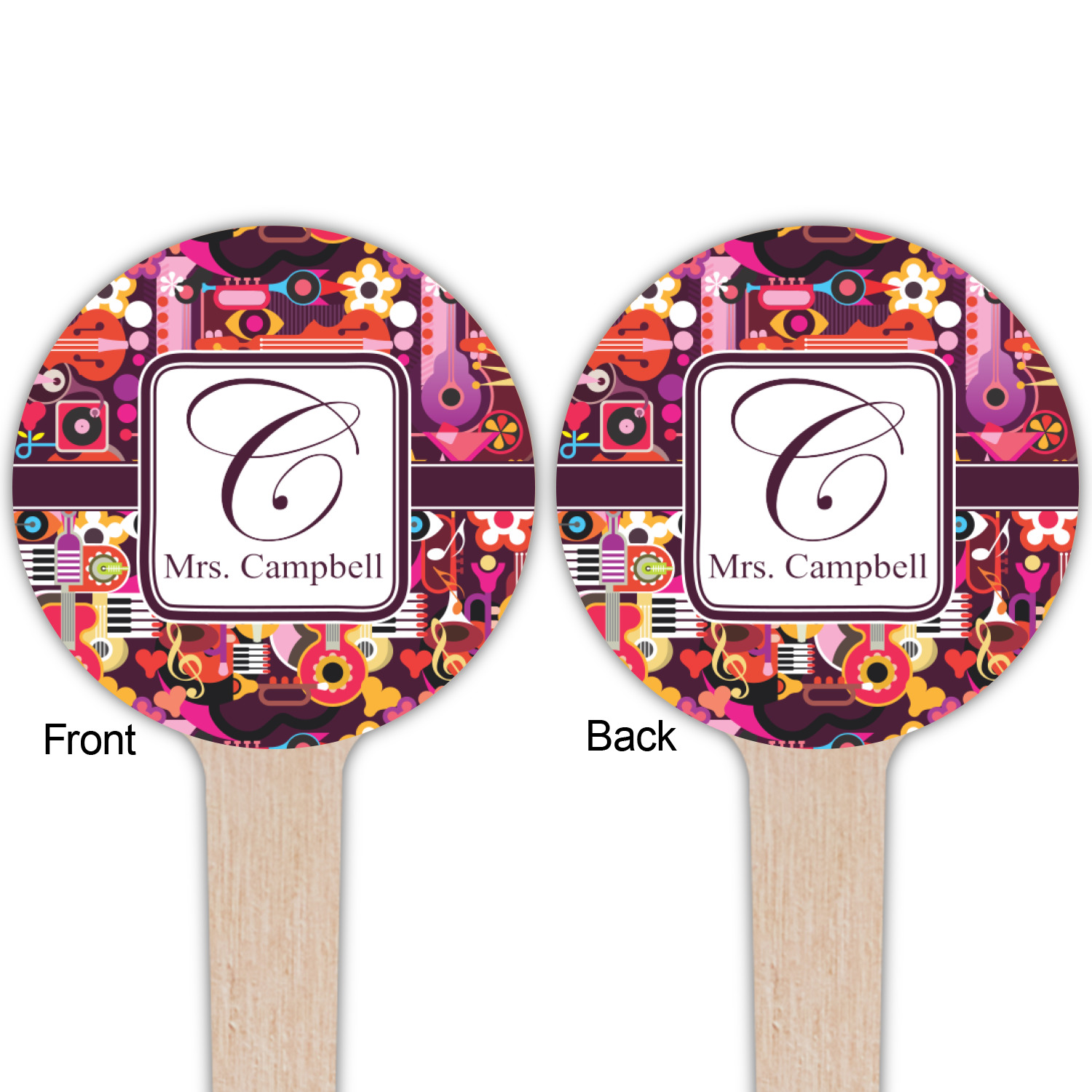 Musical Notes Designs for 4" Round Wooden Food Picks - Double-Sided