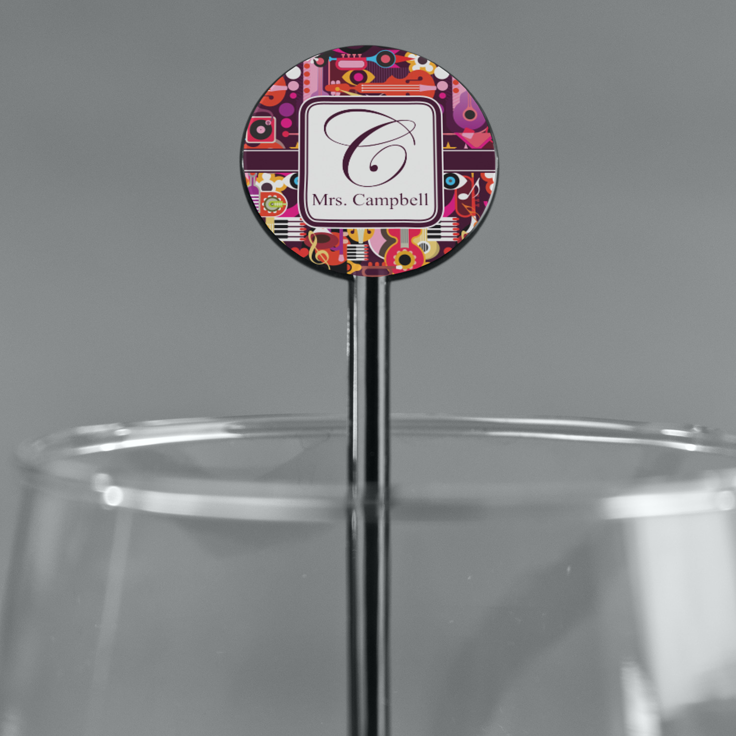 Musical Notes Designs for 5.5" Round Plastic Stir Sticks - Black - Single-Sided