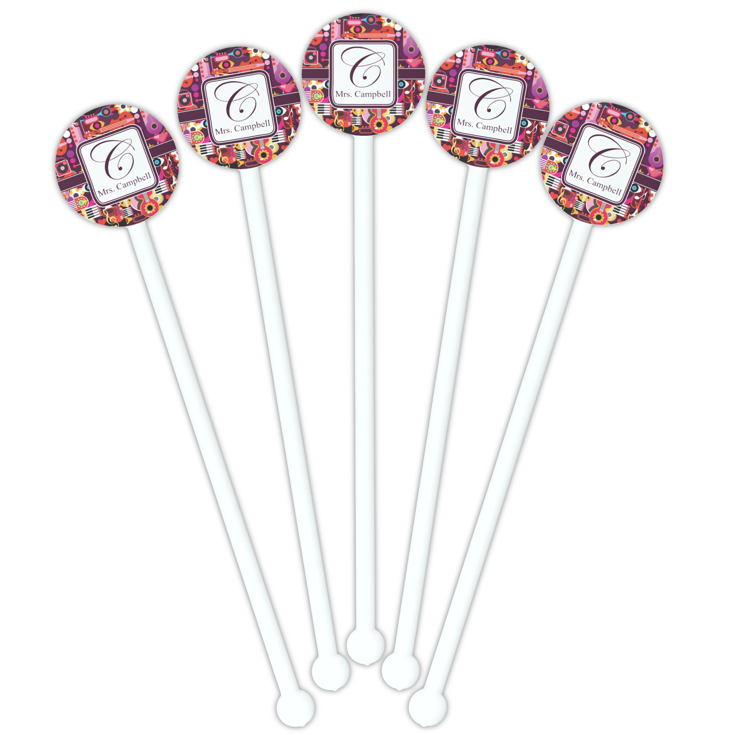Shape + Symbol Designs for 5.5" Round Plastic Stir Sticks - White - Single-Sided
