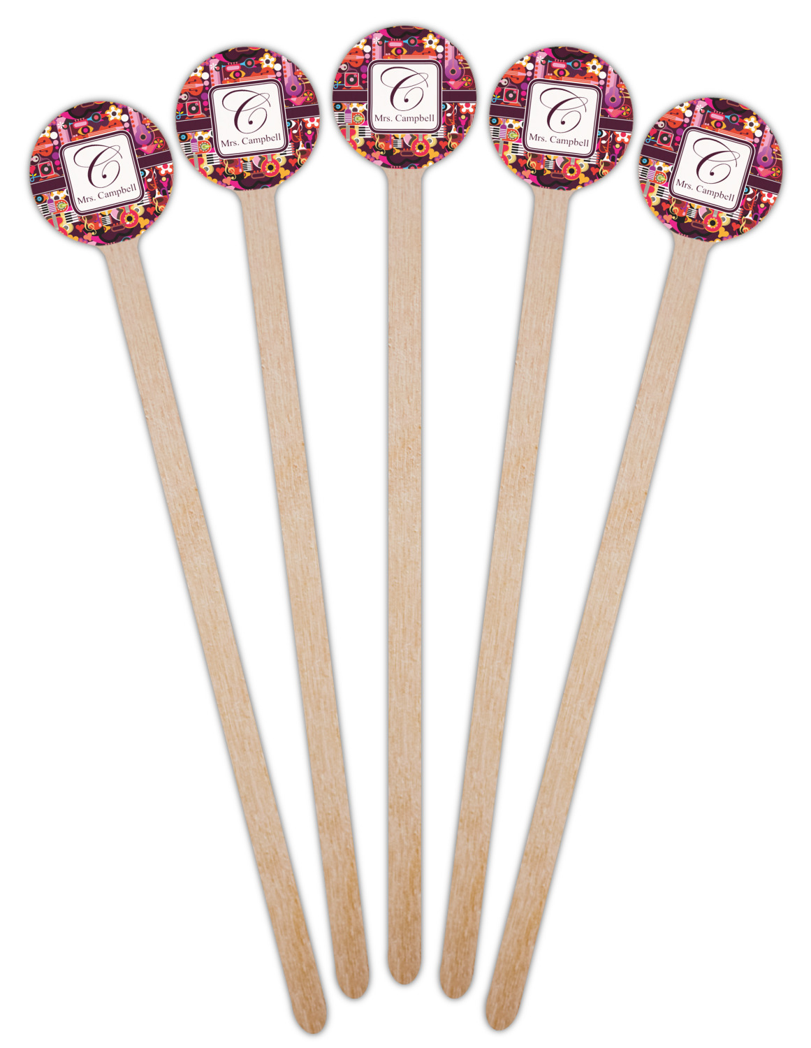 Shape + Symbol Designs for 6" Round Wooden Stir Sticks - Single-Sided