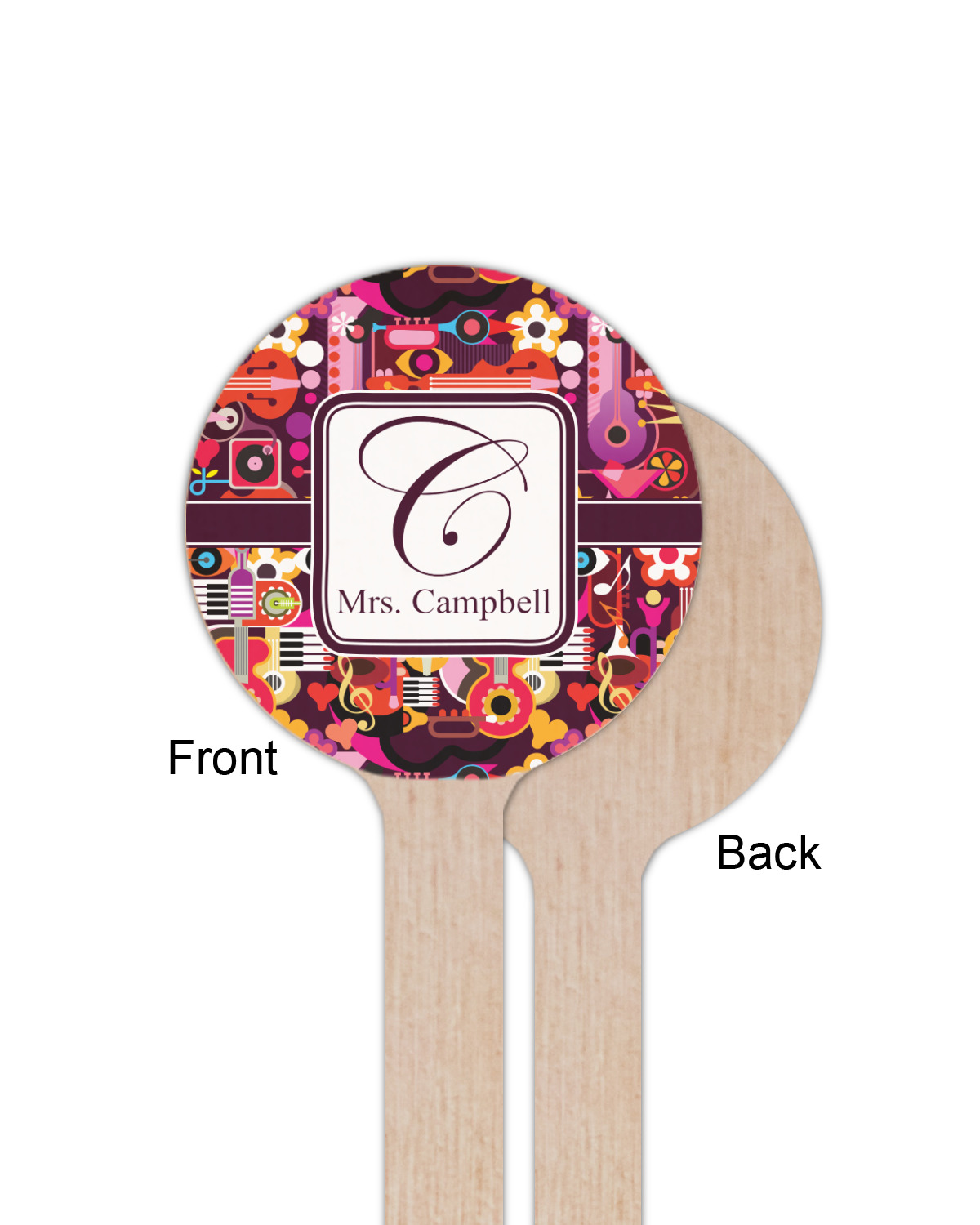 Musical Notes Designs for 6" Round Wooden Stir Sticks - Single-Sided