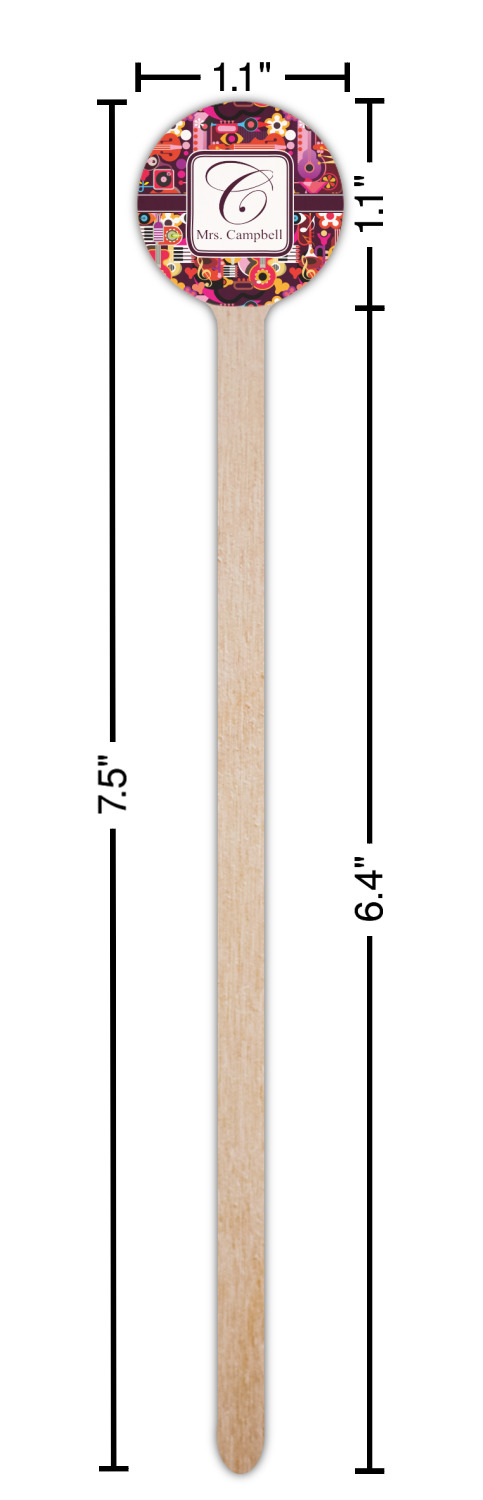 Shape + Symbol Designs for 7.5" Round Wooden Stir Sticks - Single-Sided
