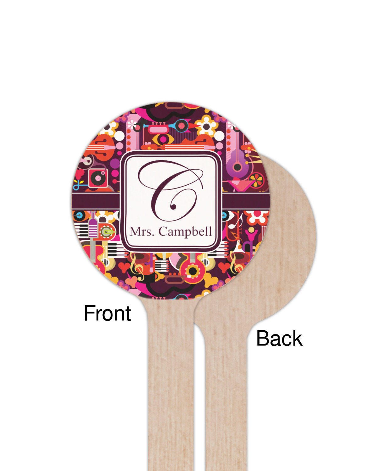Musical Notes Designs for 7.5" Round Wooden Stir Sticks - Single-Sided