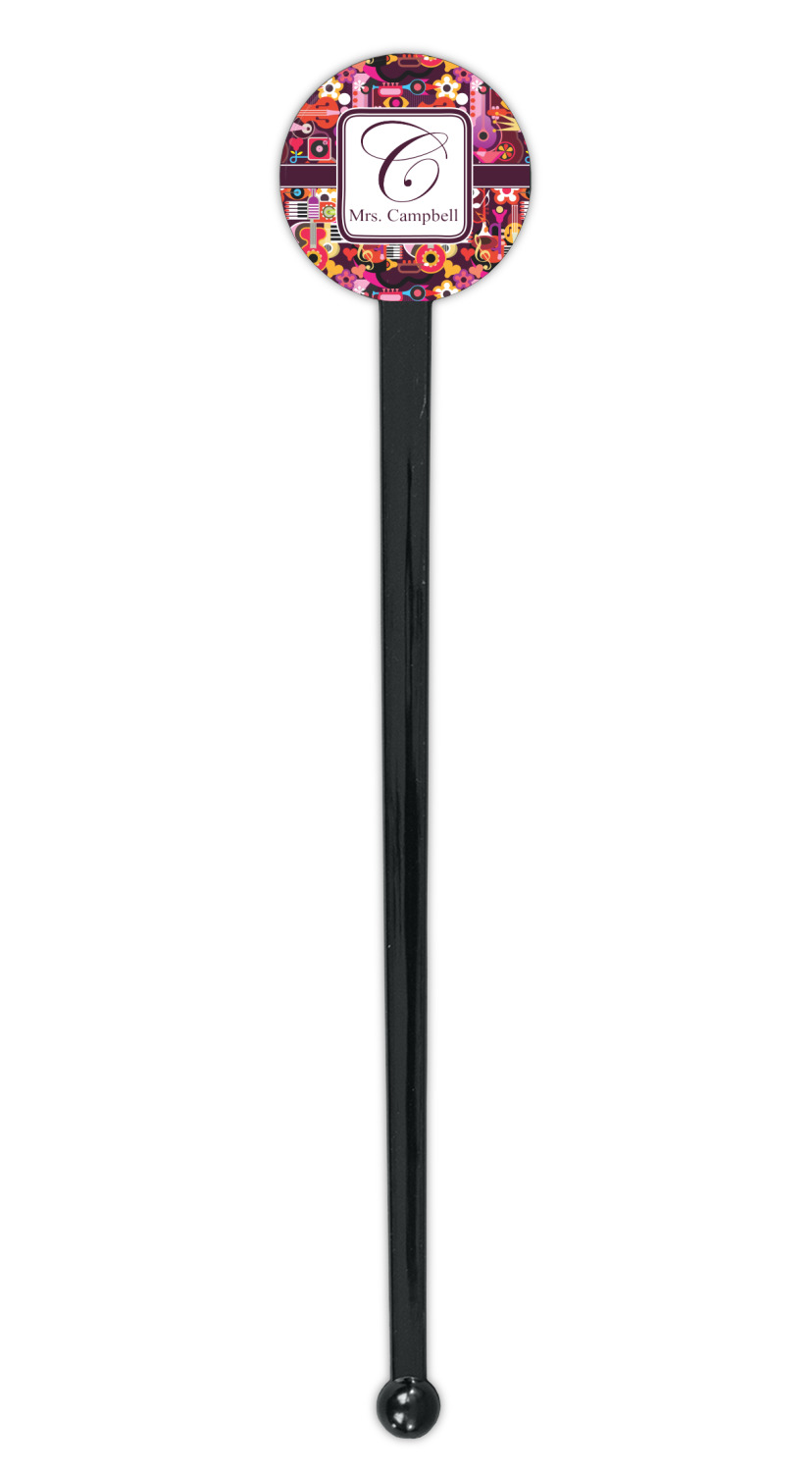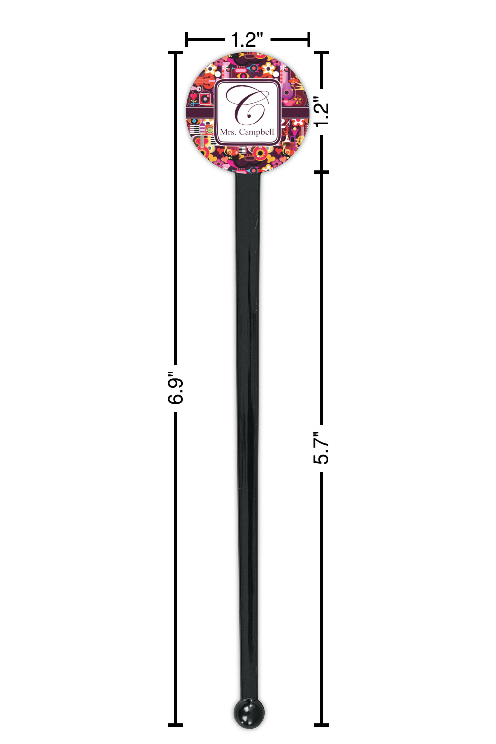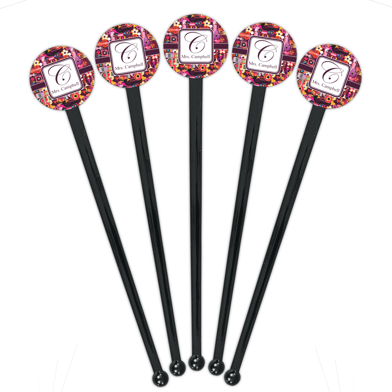 Shape + Symbol Designs for 7" Round Plastic Stir Sticks - Black - Single-Sided