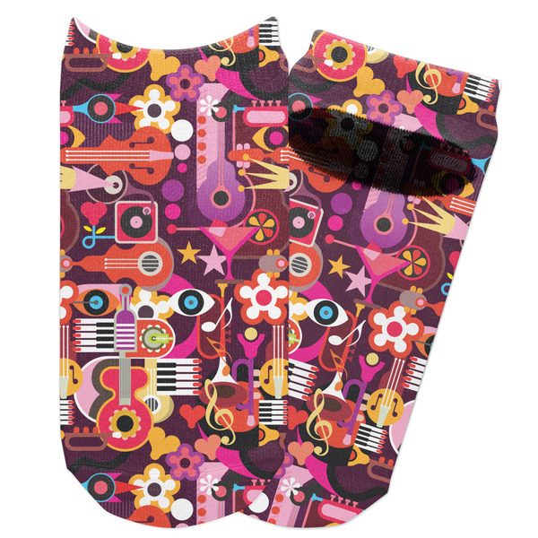 Jazz up your life with this beautiful abstract music design. Anything made in this pattern is a wonderful choice for a music lover or a great gift for a music teacher! The design features musical instruments, hearts, notes and is that a crown mixed in there? It is colorful design with tones of plum colors along with pinks and oranges. It is an interesting and beautiful multicolored design.
