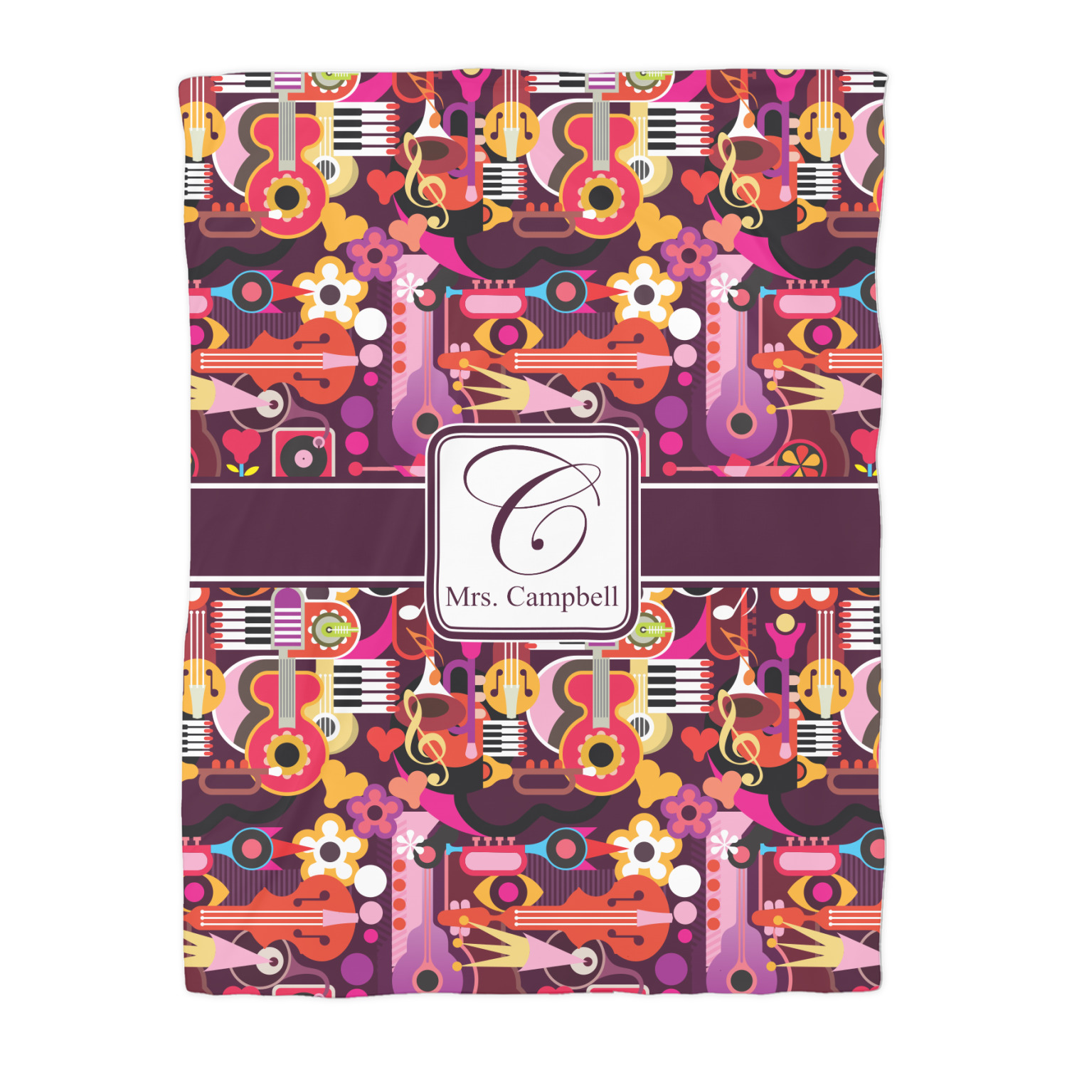 Jazz up your life with this beautiful abstract music design. Anything made in this pattern is a wonderful choice for a music lover or a great gift for a music teacher! The design features musical instruments, hearts, notes and is that a crown mixed in there? It is colorful design with tones of plum colors along with pinks and oranges. It is an interesting and beautiful multicolored design.