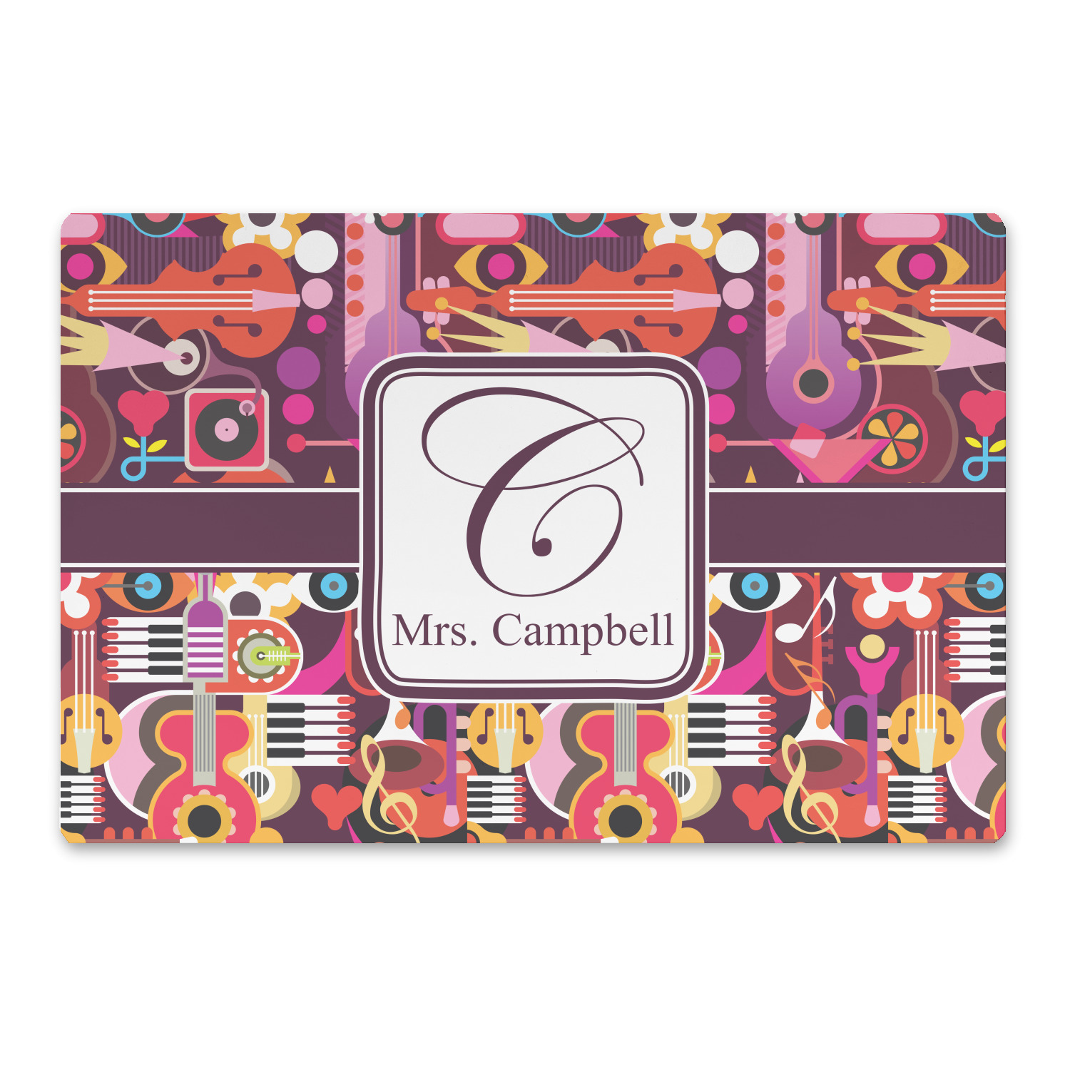Jazz up your life with this beautiful abstract music design. Anything made in this pattern is a wonderful choice for a music lover or a great gift for a music teacher! The design features musical instruments, hearts, notes and is that a crown mixed in there? It is colorful design with tones of plum colors along with pinks and oranges. It is an interesting and beautiful multicolored design.