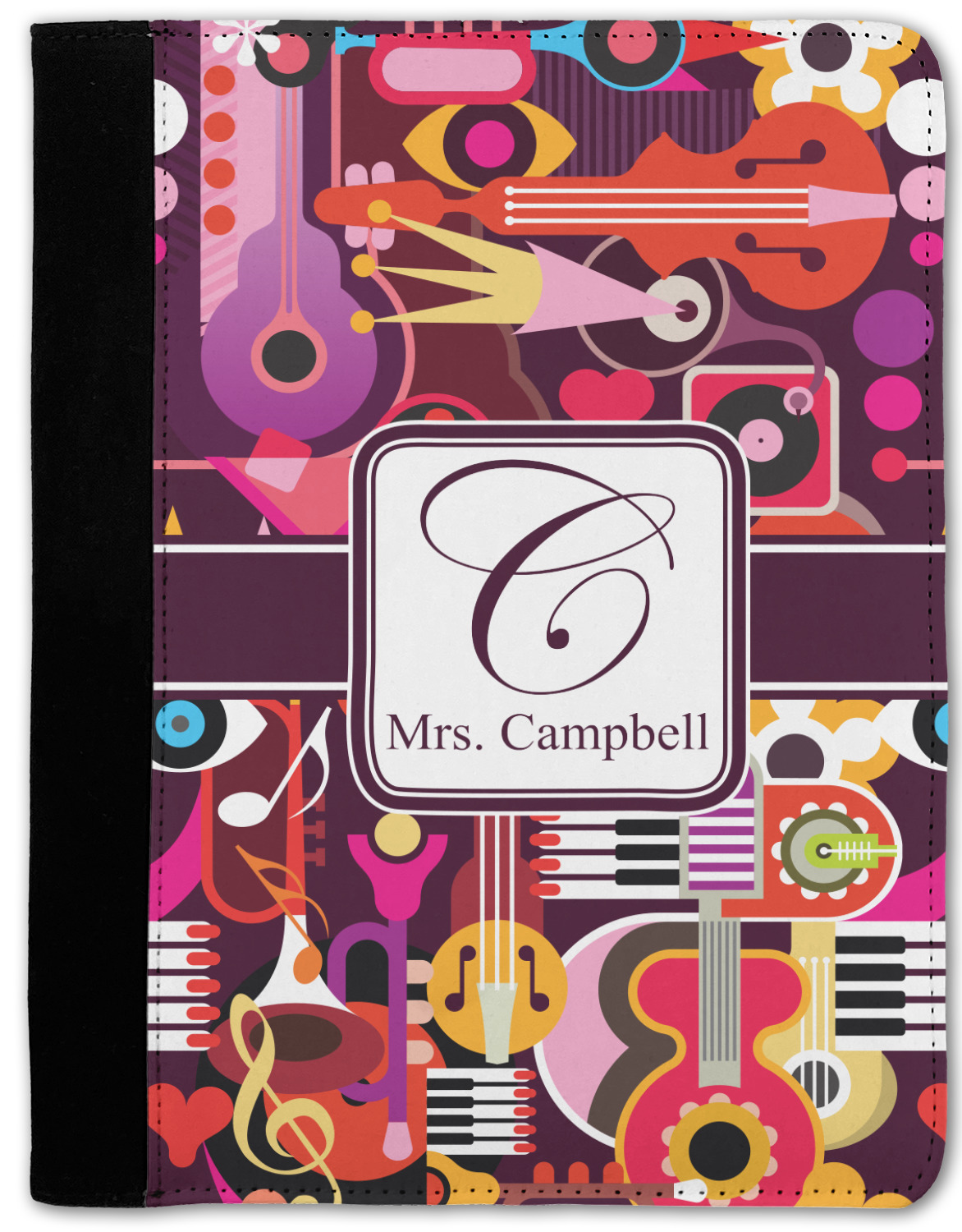 These personalized padfolios are made from a black, polyester microfiber and features a standard, 50-page notepad. However, these black padfolios can accommodate a pad with up to 100 pages. This model also features a slot pocket for any loose sheets of paper, small pockets for business cards, and an elastic band to secure a pen. We print your personalization across the front of this notepad portfolio in bright, vibrant color. These padfolios come in 2 sizes, Medium - approximately 10.25" x 8" for 5" x 8" paper and Large - approximately 12.5" x 8.5" for 8.5" x 11" paper.