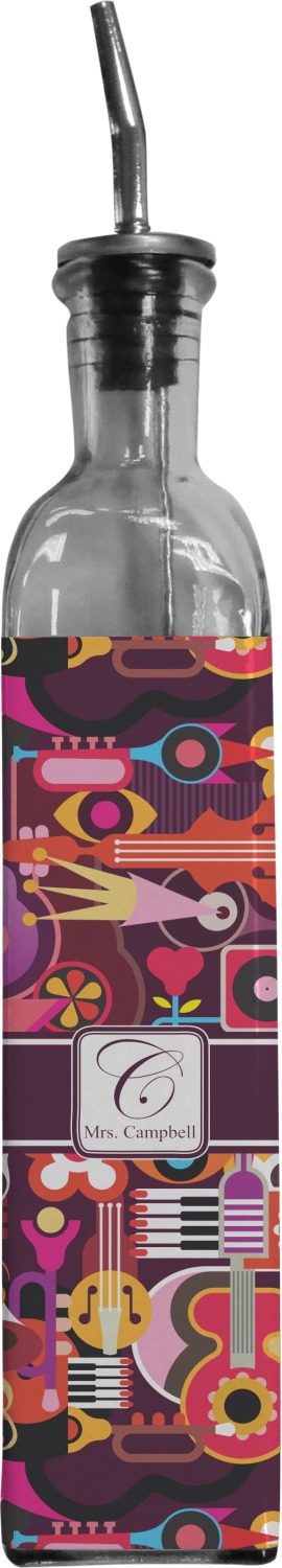 Made from recycled glass in Spain, these oil bottles have a classic, delicate look, and are accompanied by a metal spout for controlled pouring. Each bottle holds approximately 13 ounces and measures at 12 by 2 inches. We customize your glass oil bottle by applying your personalized design on the front and sides, using an adhesive. Our customizable stickers are made from high quality, gloss vinyl and are printed with waterproof, eco-solvent inks. These pieces are machine cut for accuracy and symmetry. The result is a robust, waterproof, adhesive decal that will not fade or deteriorate with time.