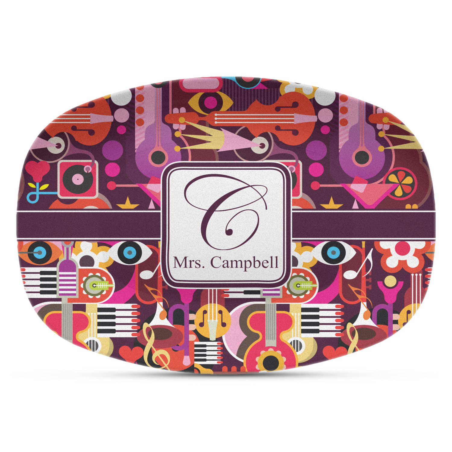 These serving platters are made from a composite, thermo-set, polymer plastic that gives it the versatility, durability, and weight of a melamine platter, without any of the downsides of melamine. These personalized platters, can withstand temperatures up to 250 degrees Fahrenheit, for up to 60 minutes. No harmful chemicals, such as BPA, formaldehyde, and DEHPs were used in the manufacturing of this product. This large serving platter measures at 14" x 10.25", and is spacious enough to hold any of your appetizers or bite-sized desserts. The platter exhibits your personalization across the entirety of its front.