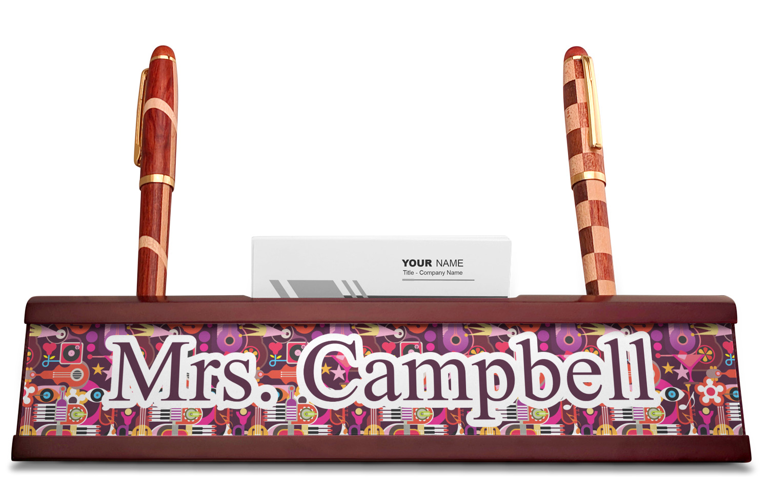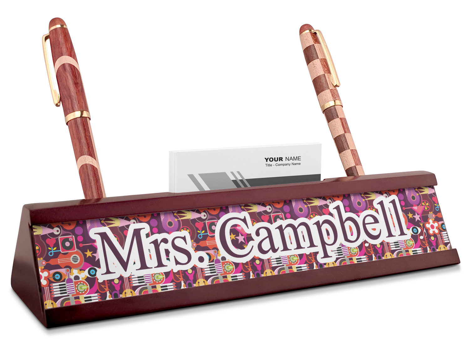 Musical Notes Designs for Red Mahogany Nameplates with Business Card Holder