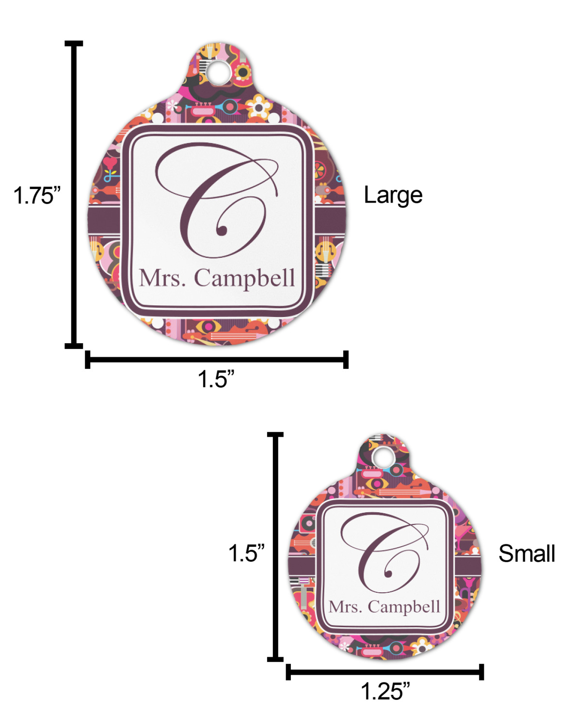 Go ahead; skip the monotony of plain pet ID tags with your very own, customized & personalized, round pet tag! This pet ID tag, fitting for both cats and dogs, will catch the eye of any onlooker (humans, canines, and felines, alike!) and accentuate your pet's individual personality.