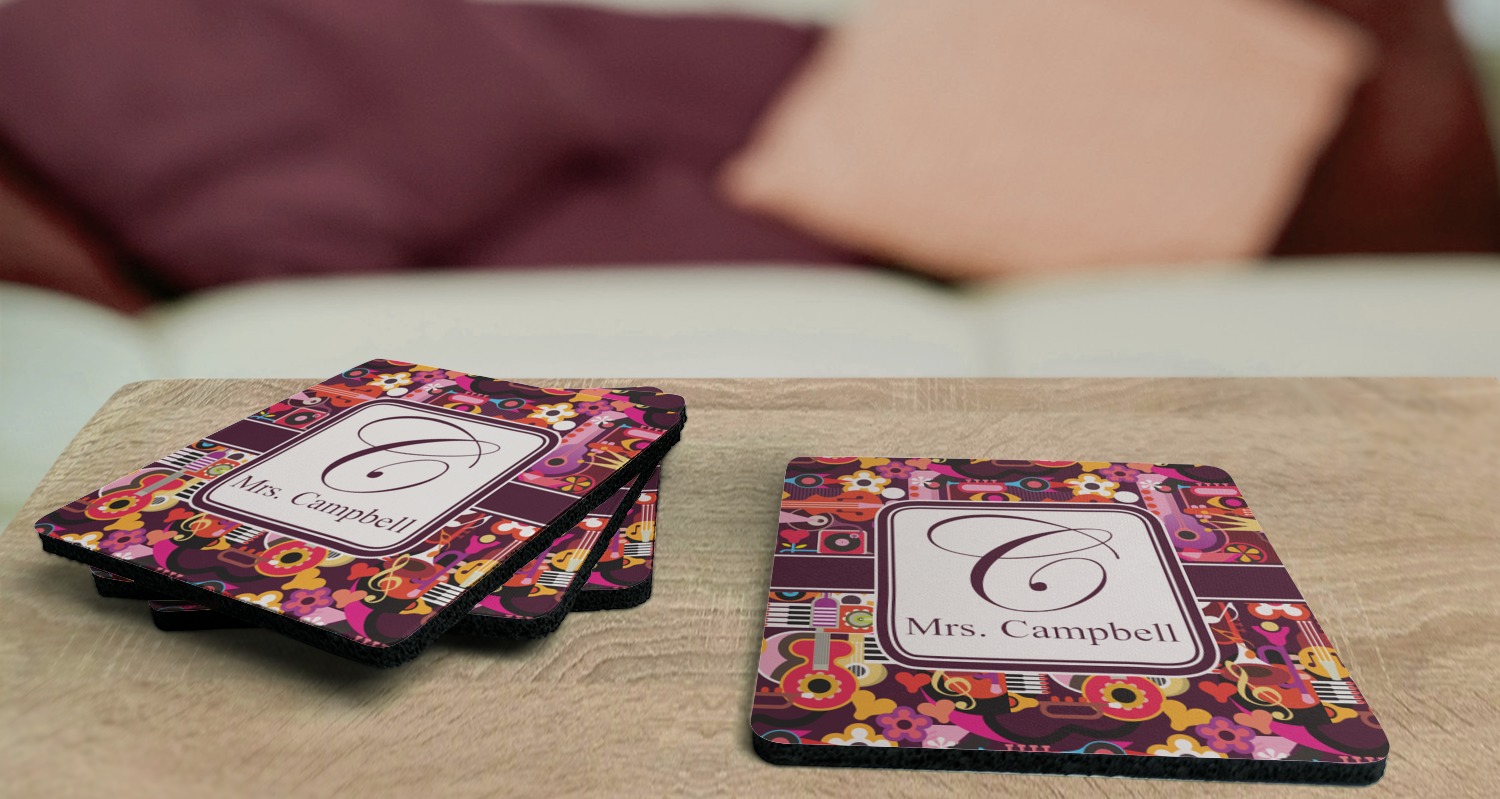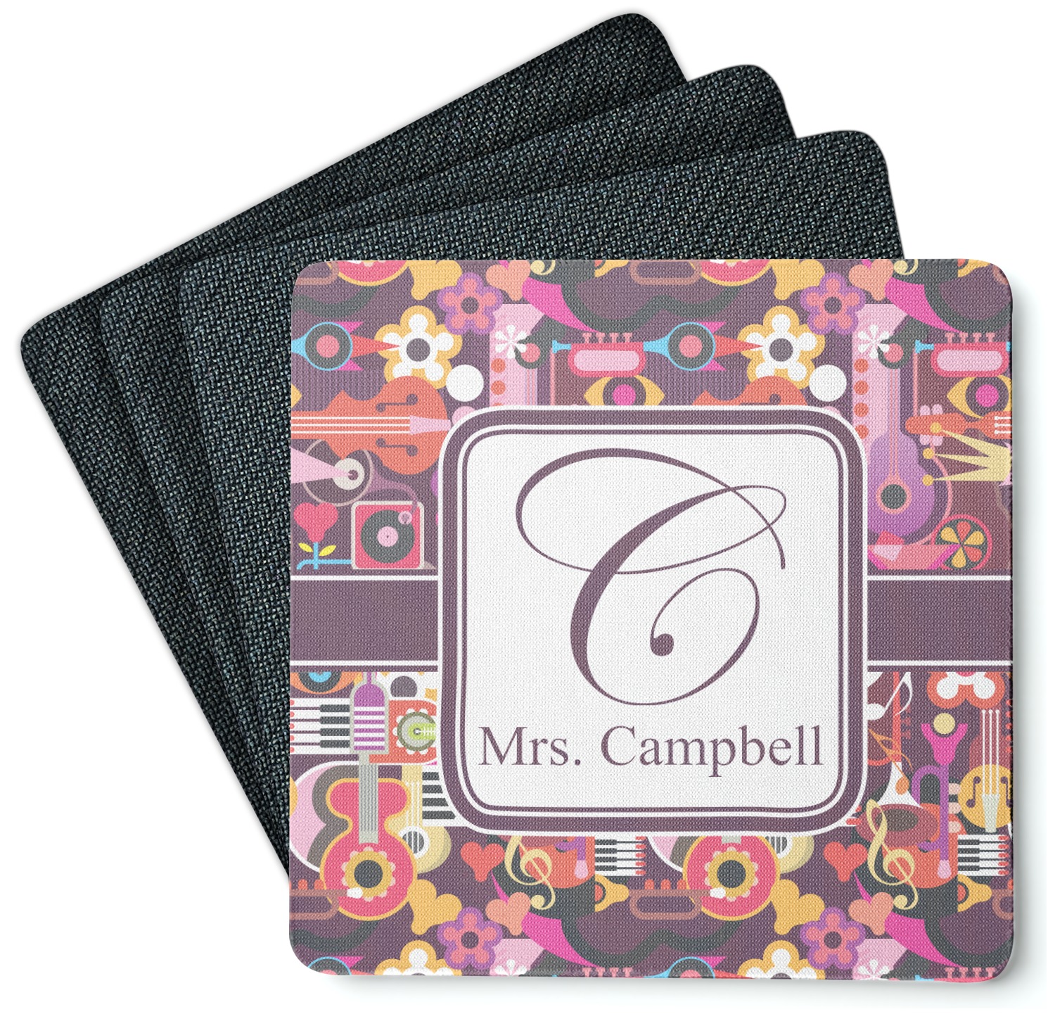 Musical Notes Designs for Square Rubber Backed Coasters - Set of 4