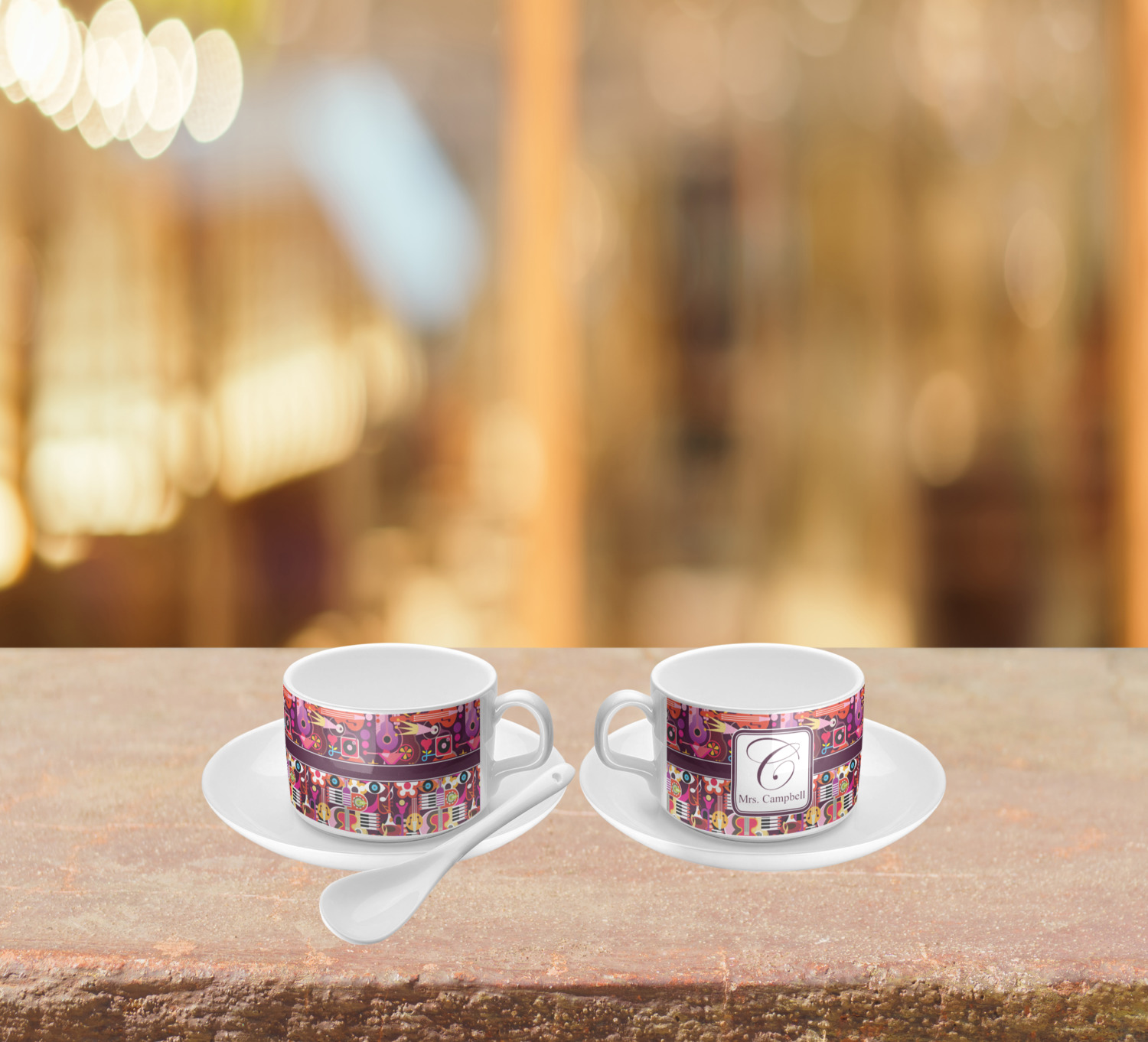 Personalize your cup with the perfect design! The white ceramic makes for a bright background to whatever personalization you decide to add to your little cup. Give your tea or coffee some class! Choose from thousands of patterns and fills in our system to fit your personality! Change whatever elements you like from the text to the ribbons to the graphics.