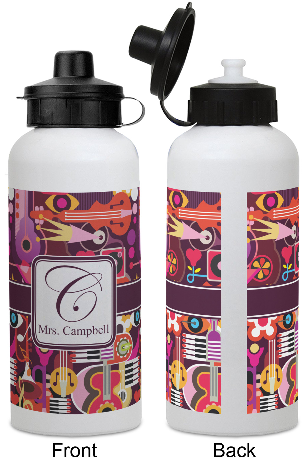 Musical Notes Designs for Water Bottles - Aluminum - 20 oz - White