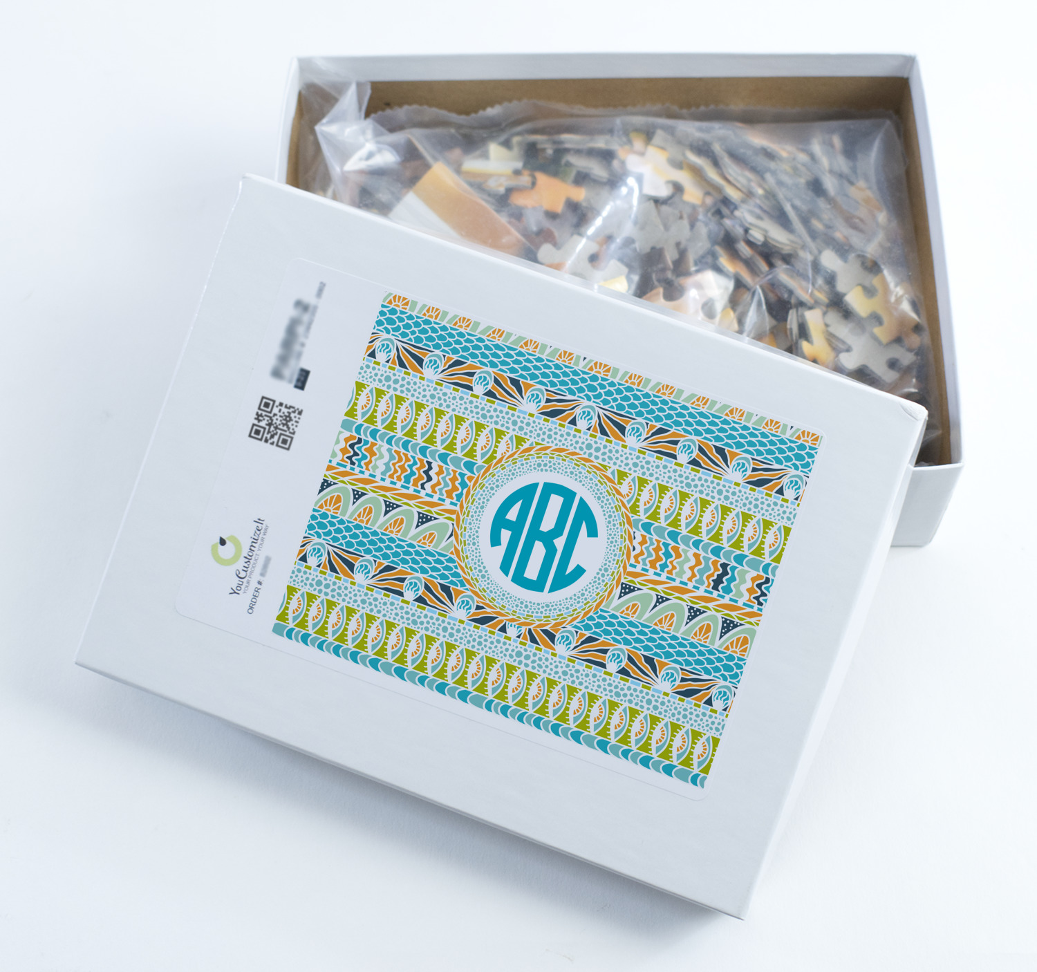 You can also upload your logo or art that you or your kids drew. To create more challenging jigsaw puzzles, you can create a pattern from with your logo or artwork. You can also add other elements such as text or personalization.