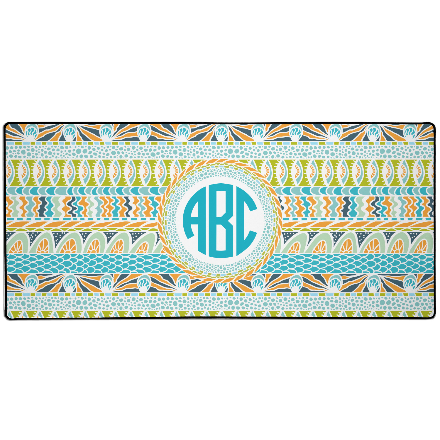 In the center of all the striped, rounded, and scaled mayhem is a white label, the eye of the storm, the perfect place for the personalization of your choice.