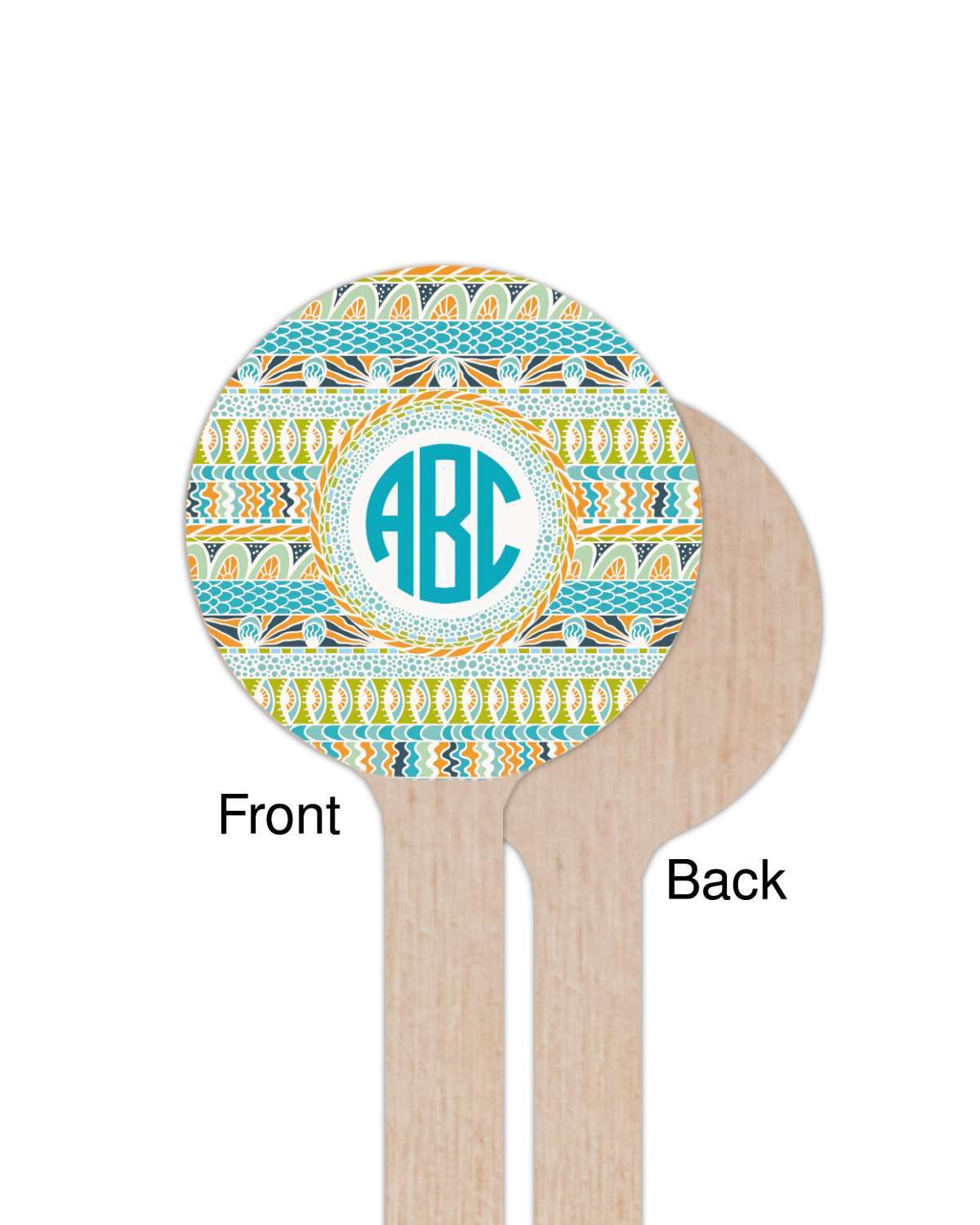 In the center of all the striped, rounded, and scaled mayhem is a white label, the eye of the storm, the perfect place for the personalization of your choice.
