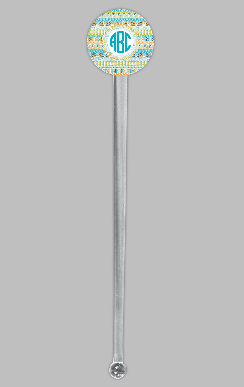 In the center of all the striped, rounded, and scaled mayhem is a white label, the eye of the storm, the perfect place for the personalization of your choice.