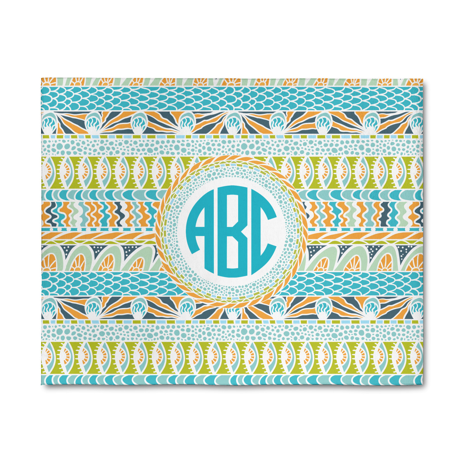 This design takes abstract to the next level by adding fun colors of teal, lime green, and orange to the traditional black and white.