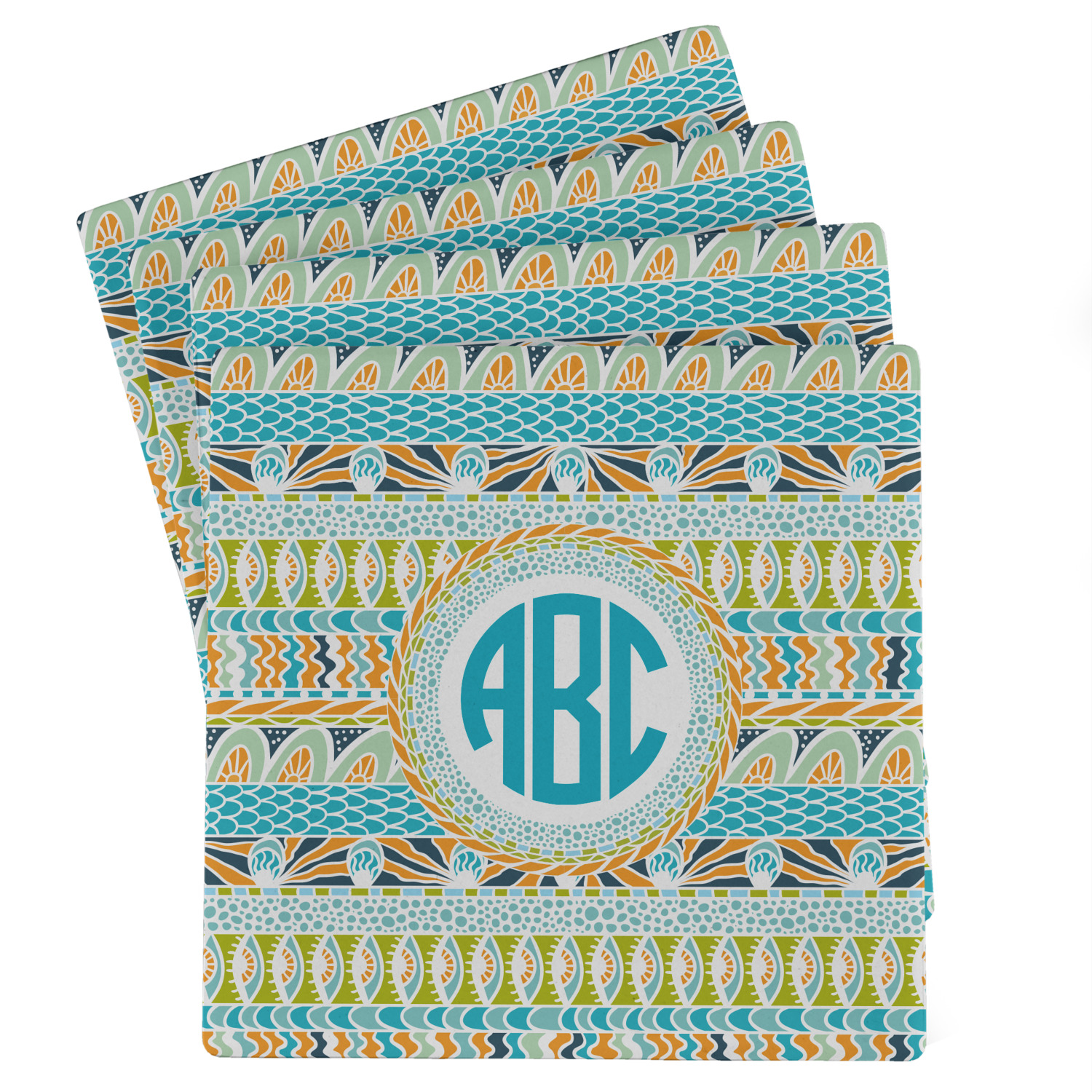 At YouCustomizeIt.com, you can put any design on the coasters. You can upload your own design, photo or logo; you can customize one of our designs and customize the patterns, colors, fonts etc.