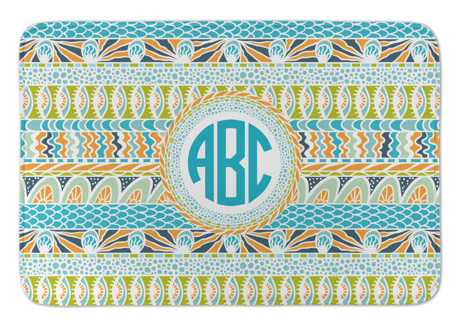 In the center of all the striped, rounded, and scaled mayhem is a white label, the eye of the storm, the perfect place for the personalization of your choice.