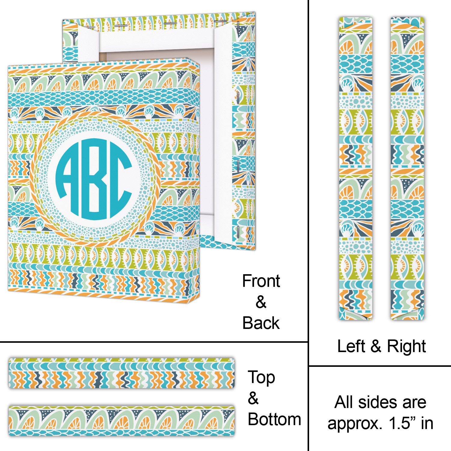 In the center of all the striped, rounded, and scaled mayhem is a white label, the eye of the storm, the perfect place for the personalization of your choice.