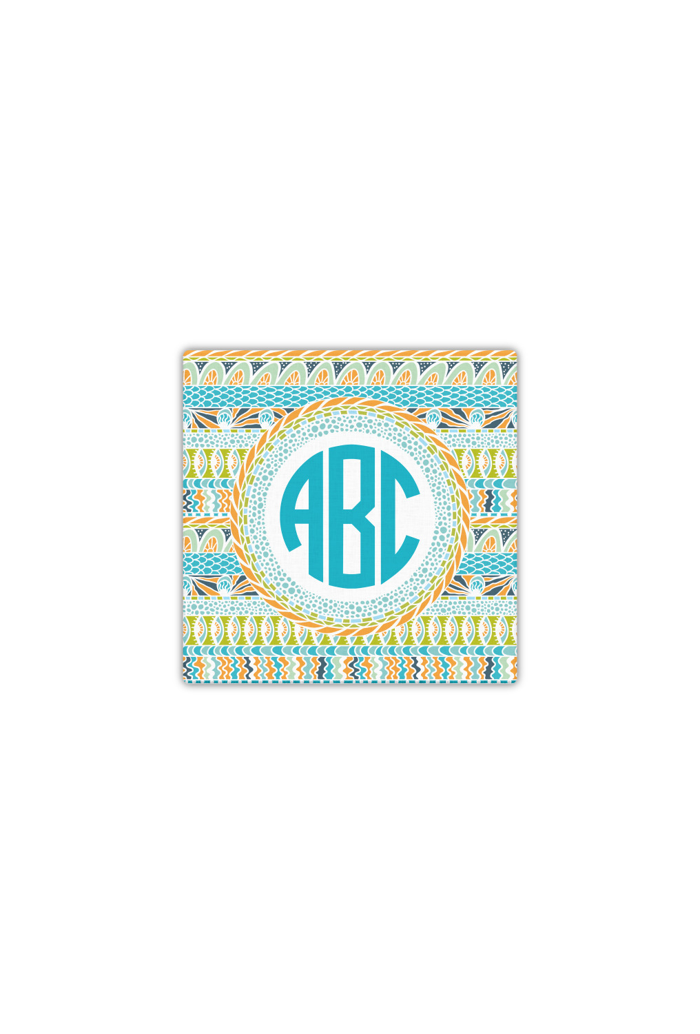 In the center of all the striped, rounded, and scaled mayhem is a white label, the eye of the storm, the perfect place for the personalization of your choice.