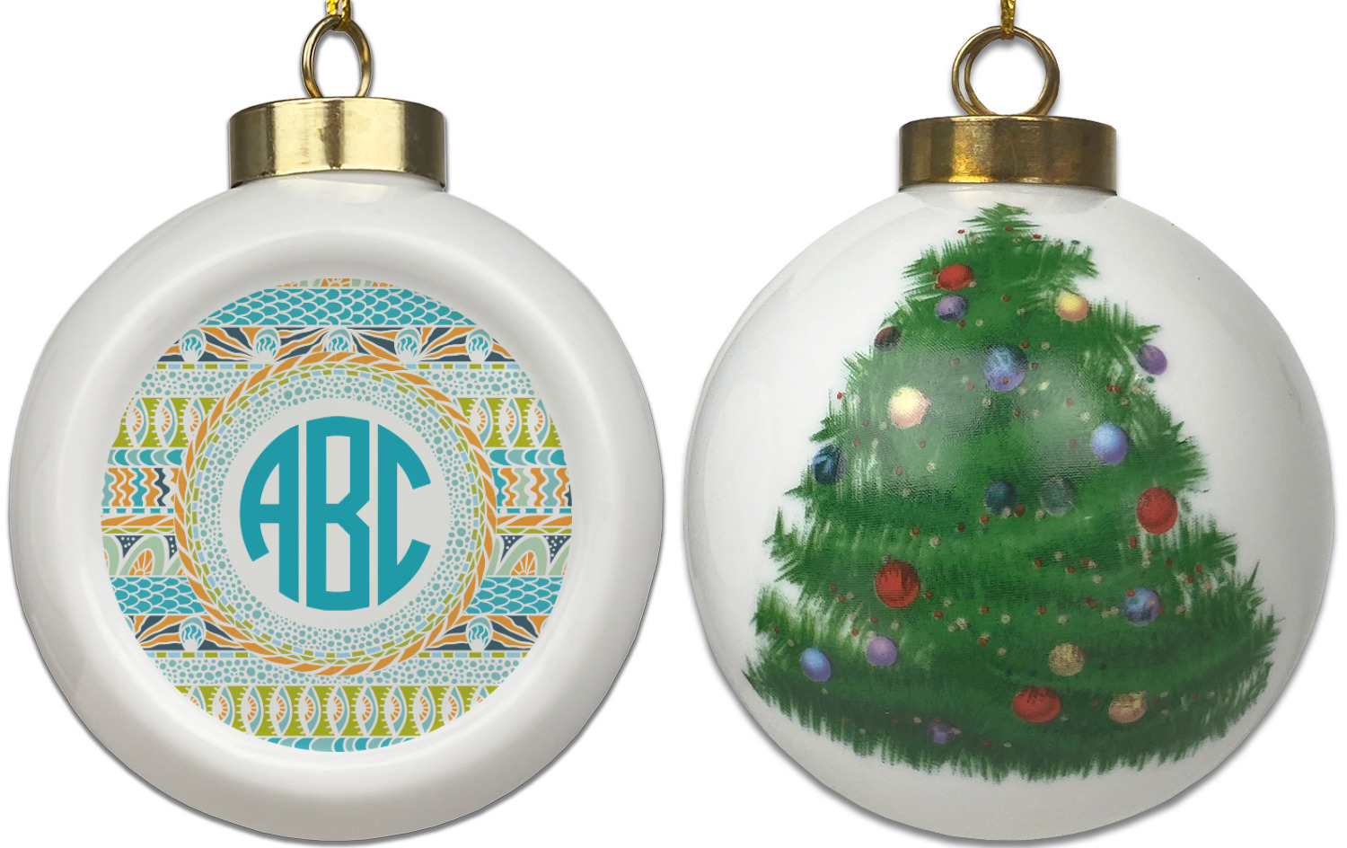 Our Christmas ornaments are a unique ceramic ball shape with a twist as it has a flat face to display your custom design! Select from one of our two design types - Christmas Tree or Poinsettia Garland - to adorn the curved back of your personal design. Each ornament measures 3H x 2.5W x 2D accompanied with a gold string accent for finishing touches to hang on your beautiful Christmas tree!