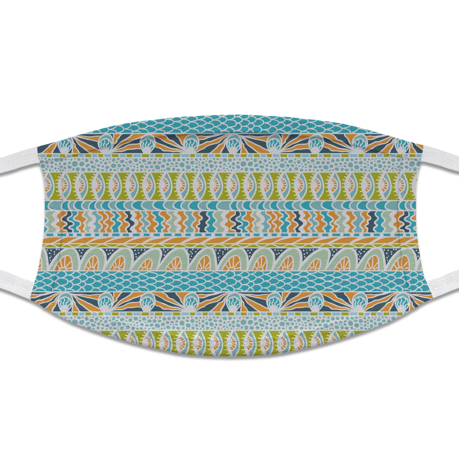 The masks are made from two layers of the soft jersey fabric. The outside layer will be printed with your design, while the inside layer is white. The body of the mask is trimmed and double stitched with the same jersey fabric. The masks are approximately 7 inches wide by 4.75 inches high