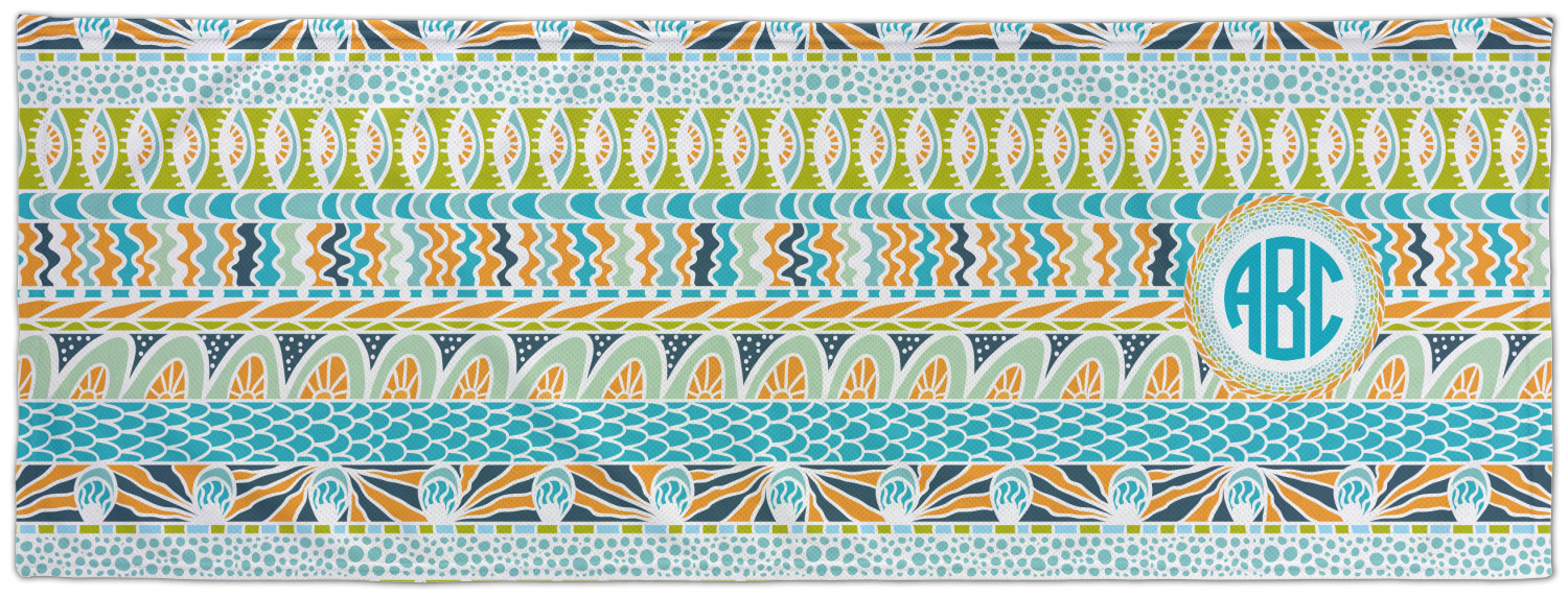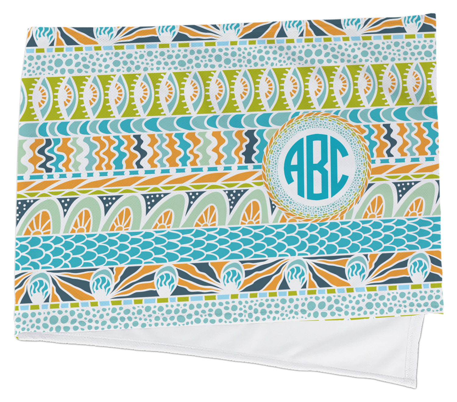 In the center of all the striped, rounded, and scaled mayhem is a white label, the eye of the storm, the perfect place for the personalization of your choice.