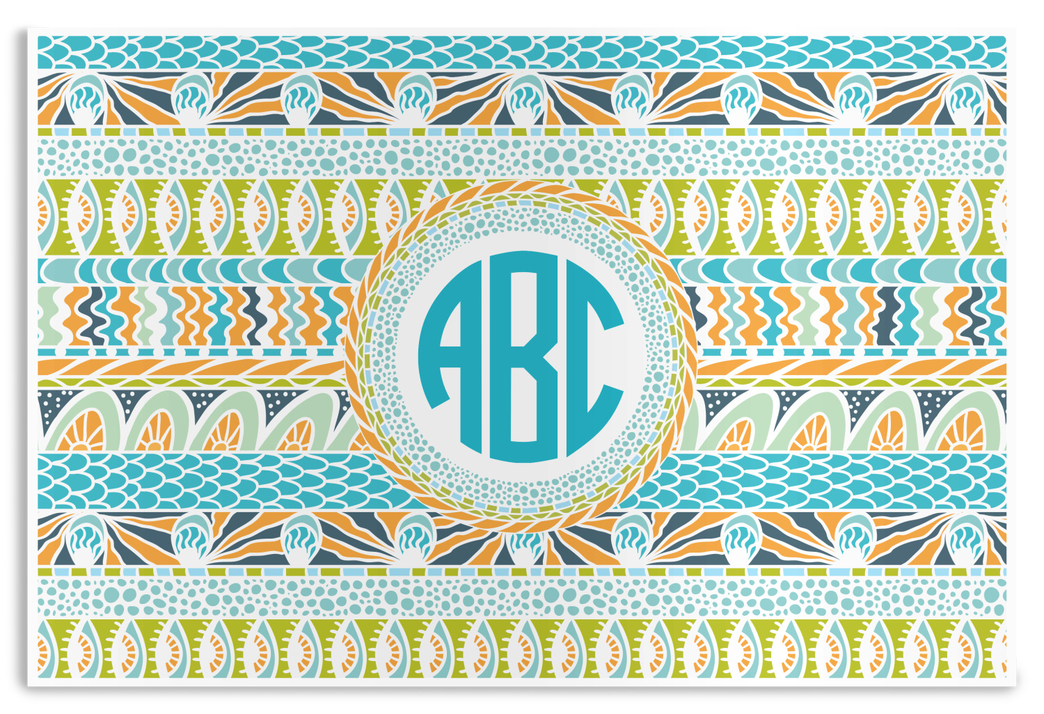 This design takes abstract to the next level by adding fun colors of teal, lime green, and orange to the traditional black and white.