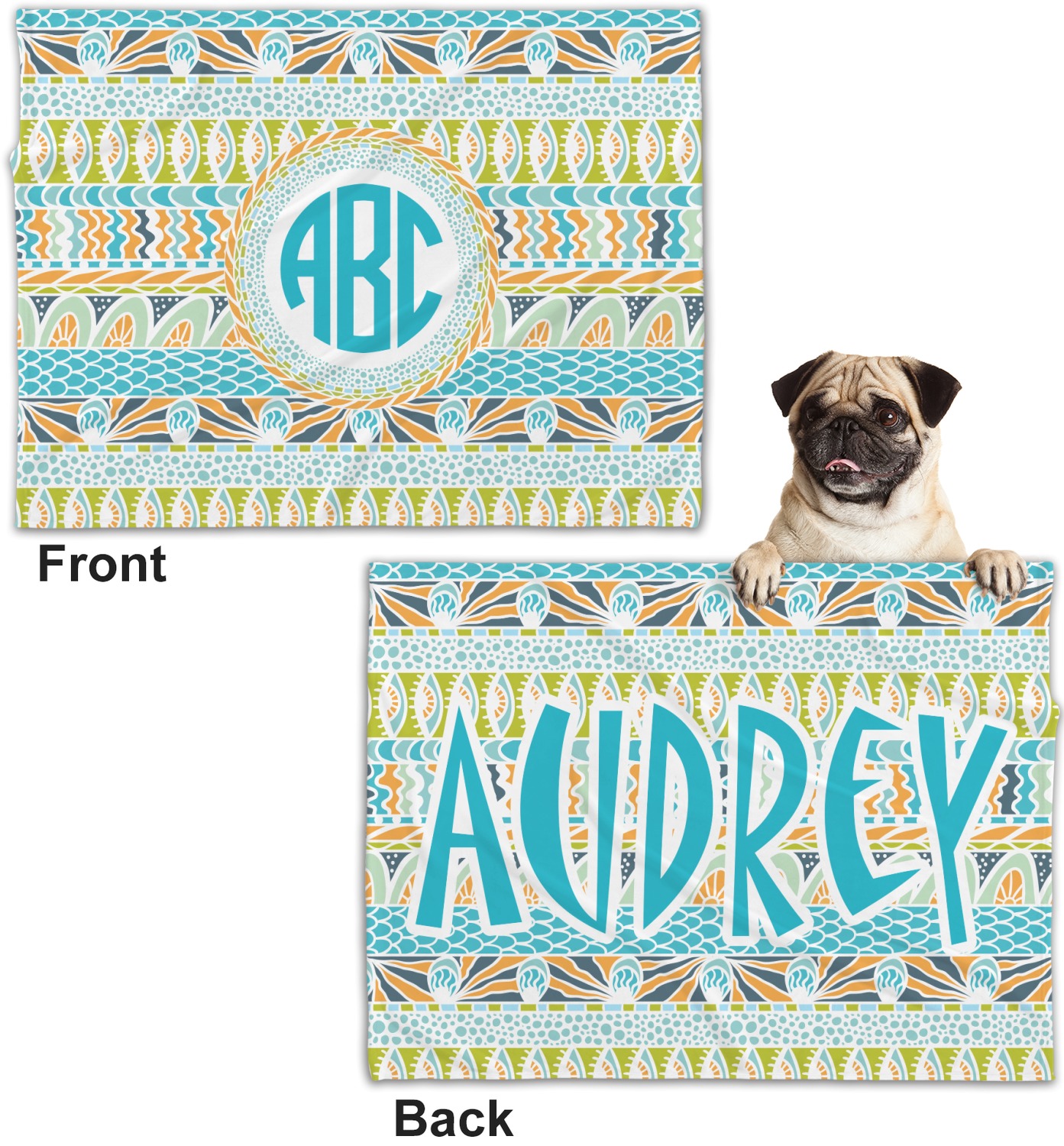 These dog blankets are crafted from a gentle, soft-to-the-touch, minky material. We print your customizations, either matching or differing, on both the top and underside of the blanket. These personalized dog blankets are available in two sizes: regular and large. Our regular size, at 40" x 30", accommodates small and some medium size dogs. At 60" x 50", our large dog blanket is a better fit for bigger breeds. Though specialized for dogs, these blankets still make a thoughtful gift for your favorite feline, or any other pet in mind!