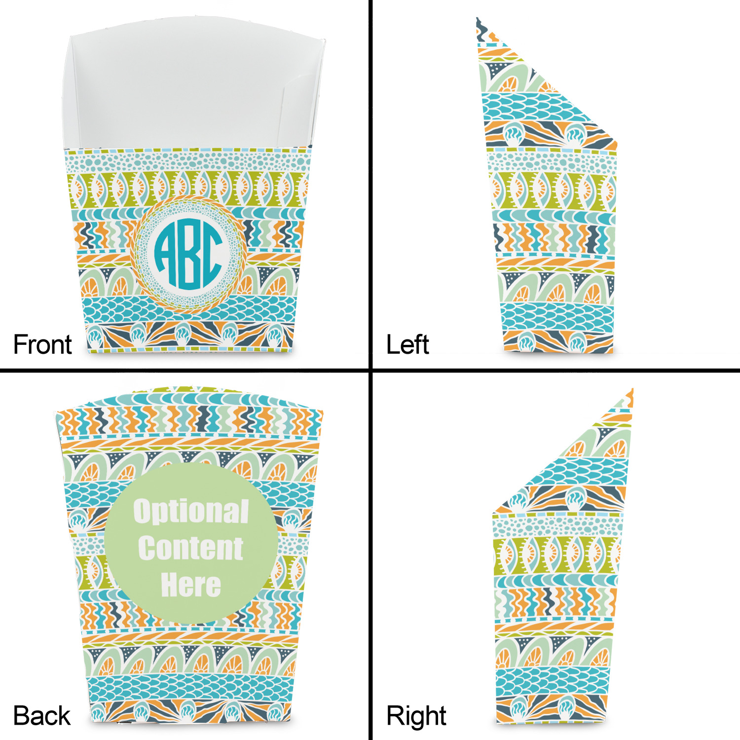 These favor boxes are printed in full color on quality cardstock - so coordinating the french fry favor boxes to match your event's themes or colors should be a breeze. You can upload your own design including artwork, logos or photos