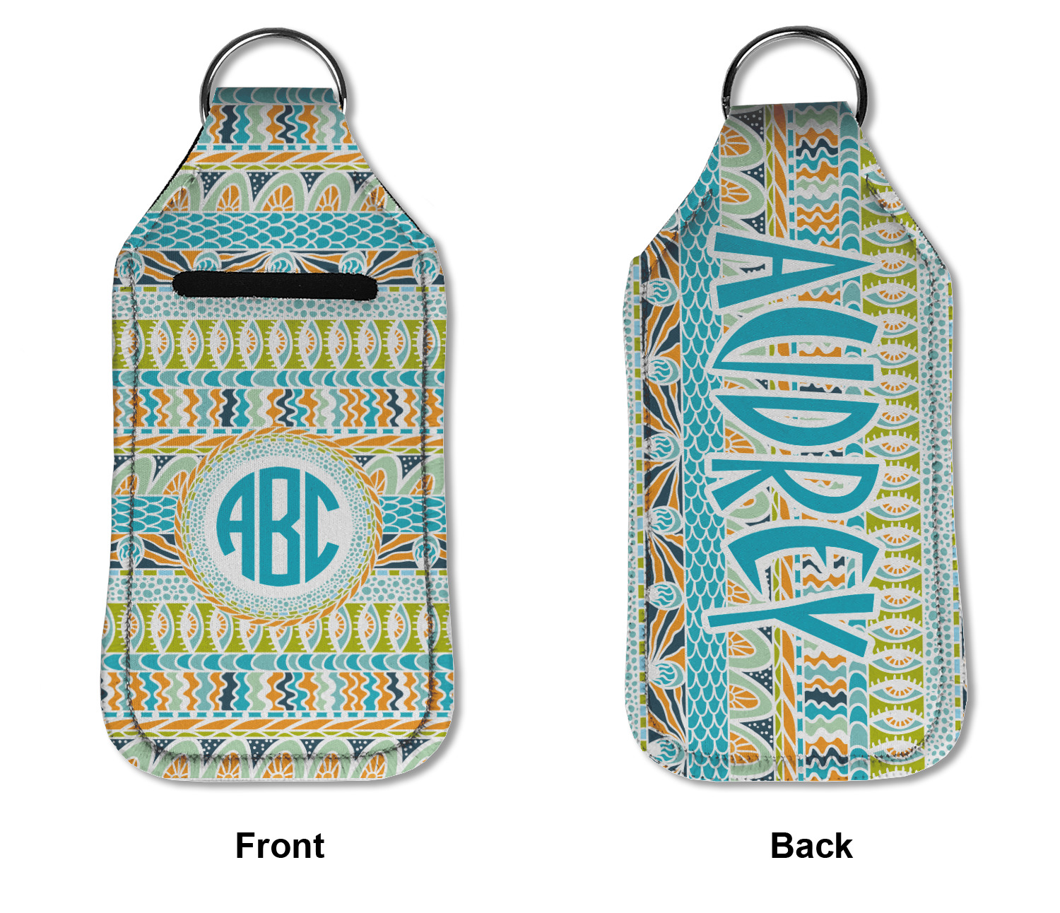 Each hand sanitizer holder comes with its own empty travel-sized, refillable hand sanitizer sure to fit snug in your customized sanitizer case! Our hand sanitizer cases are a durable, yet soft neoprene material sure to last any daily activities or travel agenda. Customize and personalize a hand sanitizer bottle holder with one of our two sizes - small (4.25" x 2.25") or large (5.5" x 2.5"). Each travel sanitizer holder comes with a keyring for attachment on bags, keys, or more!