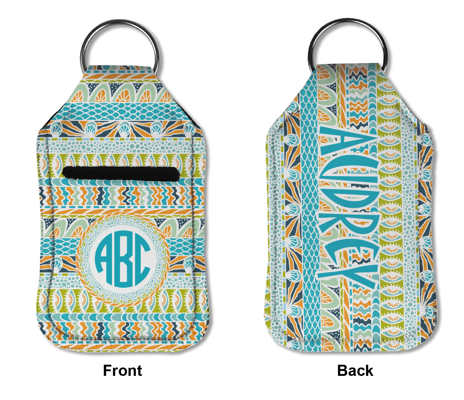Each hand sanitizer holder comes with its own empty travel-sized, refillable hand sanitizer sure to fit snug in your customized sanitizer case! Our hand sanitizer cases are a durable, yet soft neoprene material sure to last any daily activities or travel agenda. Customize and personalize a hand sanitizer bottle holder with one of our two sizes - small (4.25" x 2.25") or large (5.5" x 2.5"). Each travel sanitizer holder comes with a keyring for attachment on bags, keys, or more!